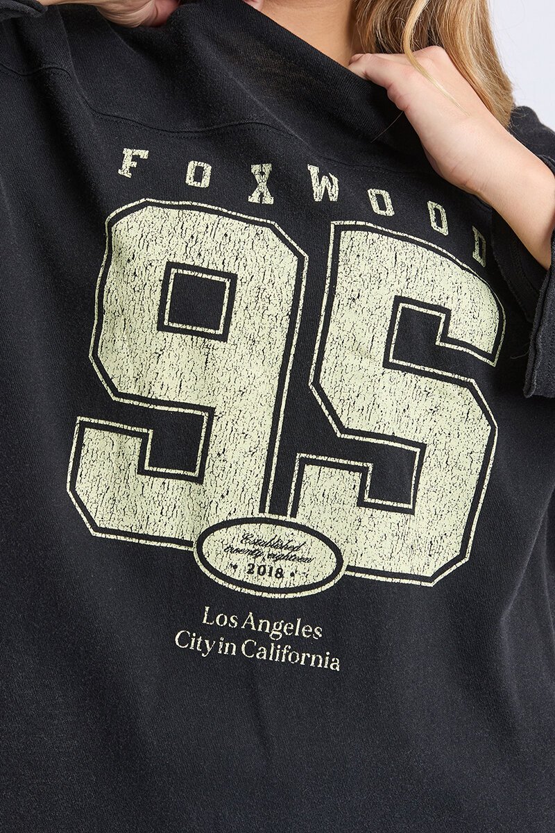 The Foxwood Ninety Five Tee brings that vintage varsity energy. With a bold graphic front, relaxed drop shoulders, and washed cotton feel, it’s made for easy, throw-on days. Style it with denim or bike shorts and let the sporty, off-duty vibes do their thing.