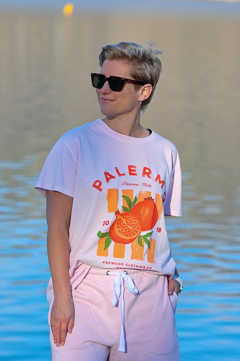 The Foxwood Palermo Tee is all about easy, holiday-happy vibes. With its soft pastel base and bold Palermo graphic, it’s the kind of tee that instantly brightens your outfit. Relaxed, comfy, and made for denim days or laid-back weekends.