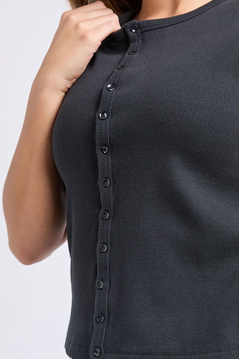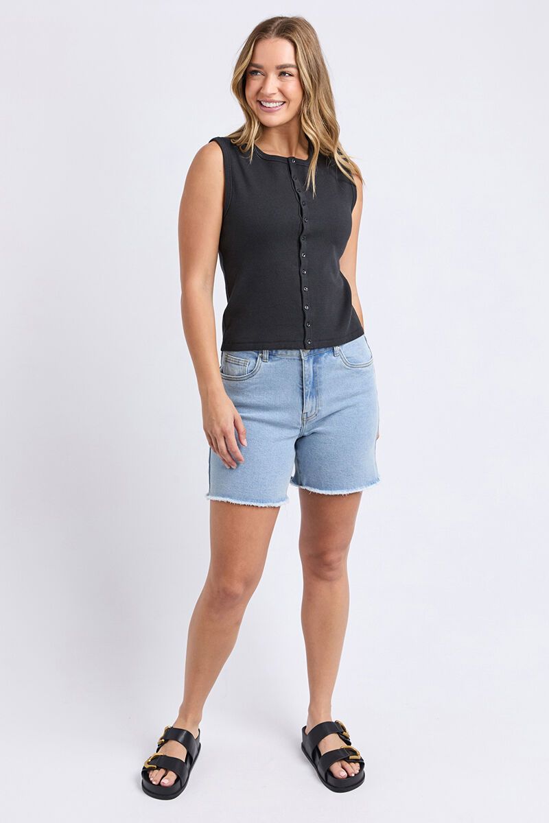 The Foxwood Raf Button Through Tank is your go-to for effortless summer styling. This sleeveless ribbed knit features a flattering fitted shape with button-through front detail — wear it done up as a top or open over tees and dresses for a casual layered look.