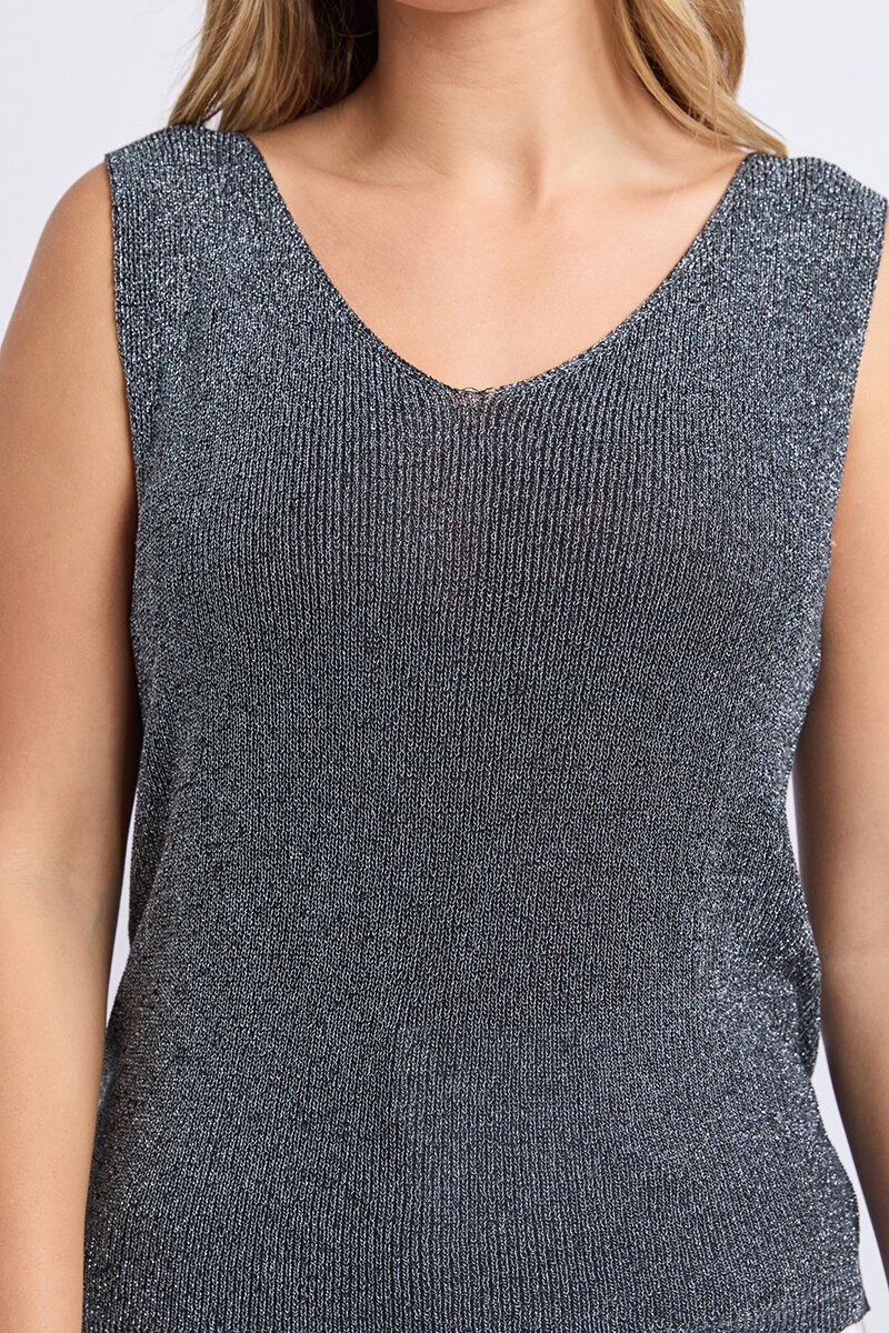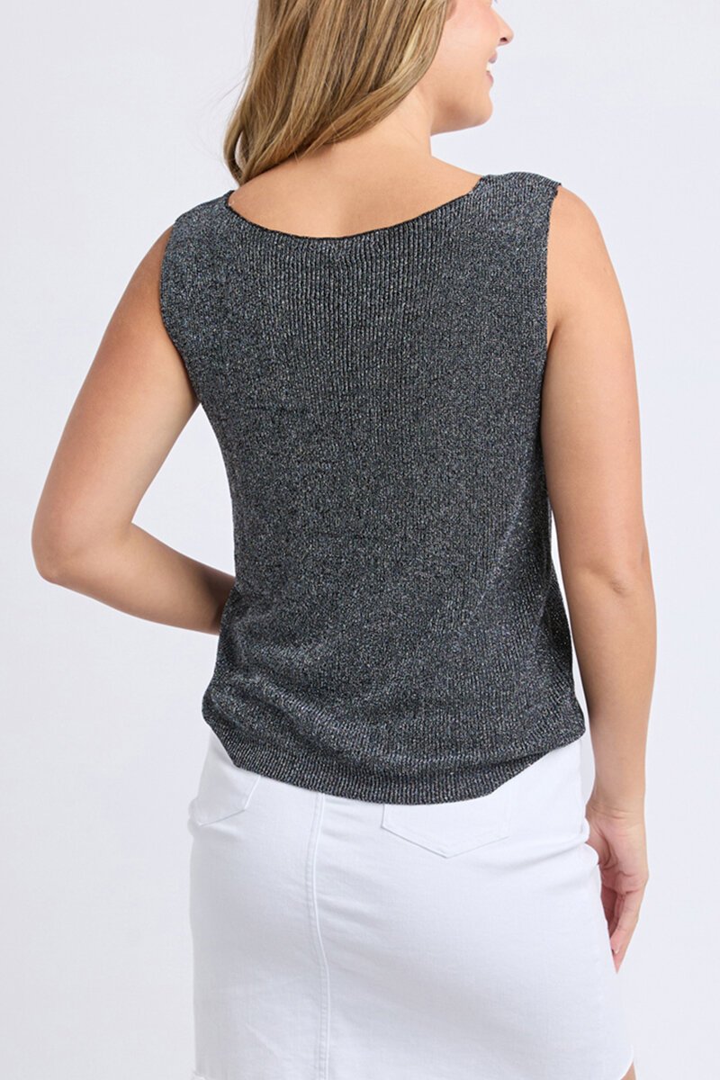 Foxwood Whitby Knit Top — a little sparkle goes a long way. This rib-knit tank brings subtle shimmer, a flattering scoop v neckline, and an easy drape you can dress up or down. Perfect with denim or a sleek skirt for instant night-out energy.