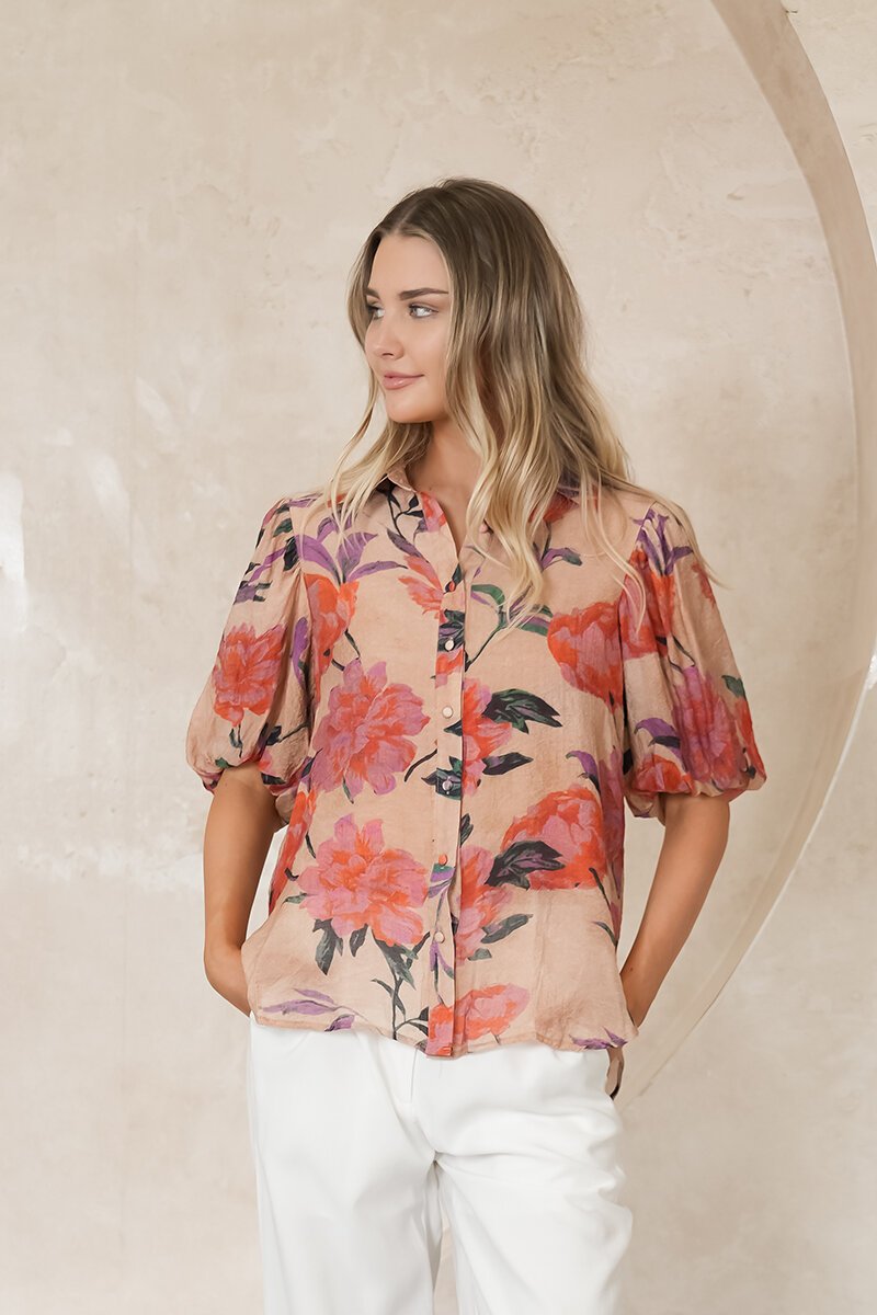The Fria The Label Floral Balloon Sleeve Blouse is an effortless way to add a little drama to your everyday look. With soft puff sleeves, a button-through front, and a painterly floral print, it’s equally at home tucked into trousers or worn loose and flowy.