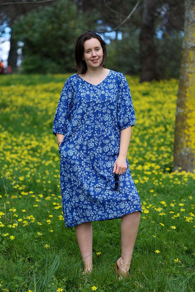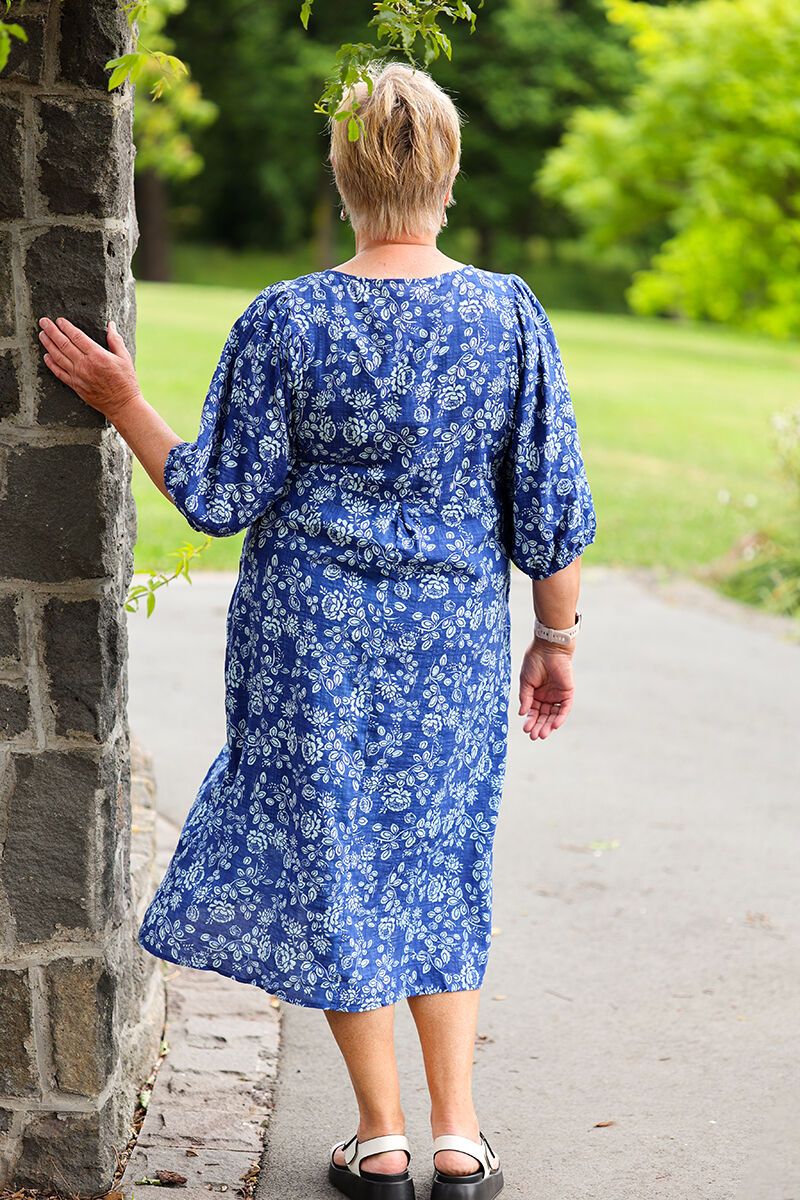The Glam Blue Tidal Dress is easy, breezy, and ready for everyday wear. Featuring a fresh floral print, relaxed cocoon silhouette, v-neckline, and soft sleeves, it’s designed with handy pockets for all-day comfort. A simple slip-on style that feels instantly put together.