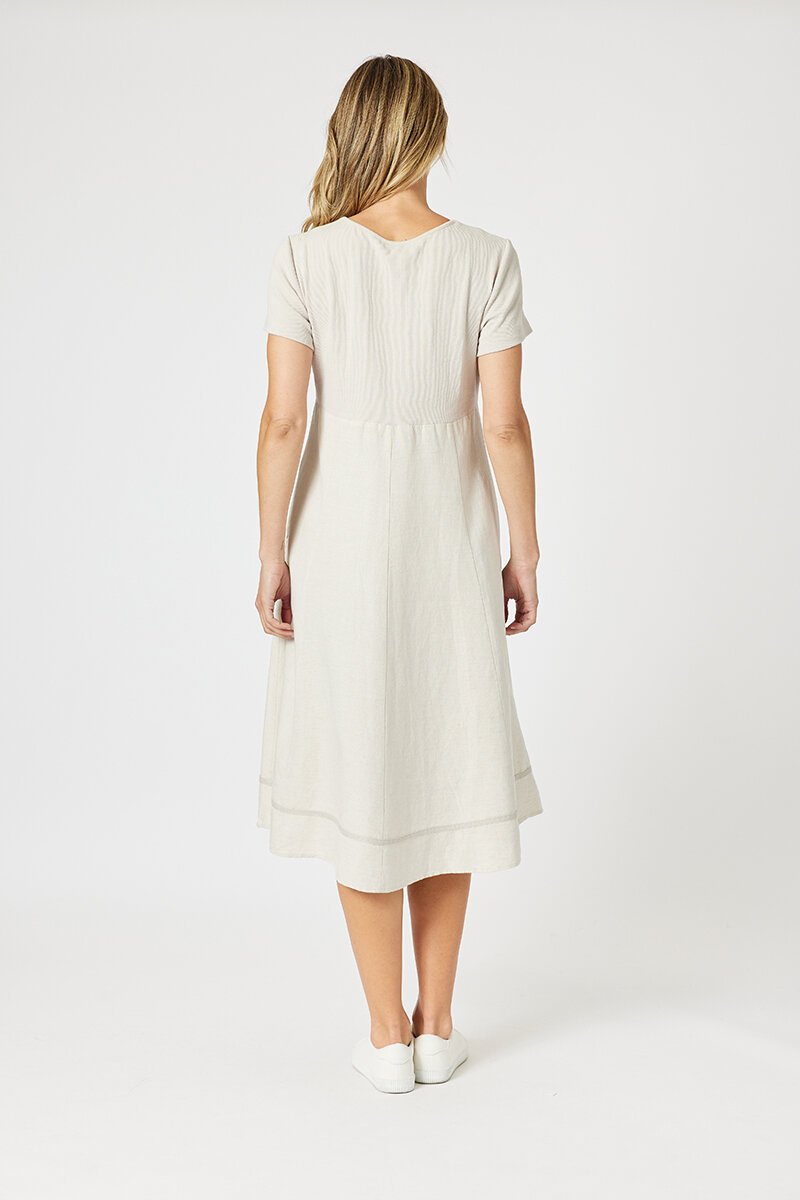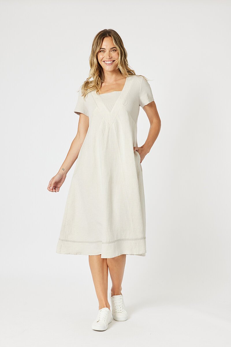 The Gordon Smith Lino Le Marais Dress is an easy, everyday piece cut from breathable fabric. With a soft square neckline, short sleeves, and a gently flared skirt, it skims beautifully while keeping you cool and comfortable all season long.