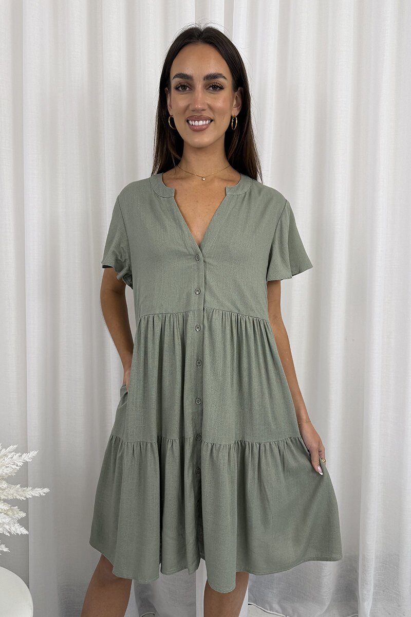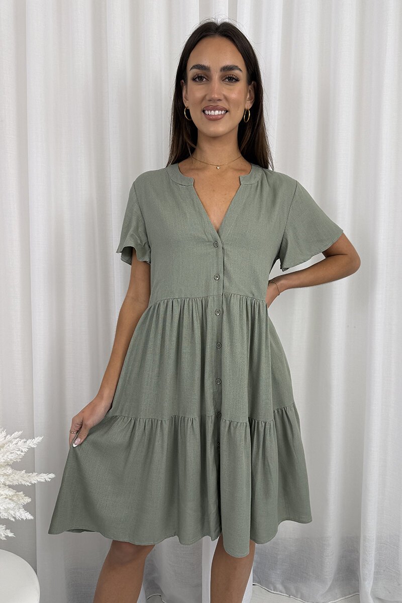 The Grace & Co Tiered Baby Doll Dress is your cue to relax in style. With soft flutter sleeves, button detailing, and that swingy tiered shape we love, it’s equal parts easy and flattering — made for coffee dates, markets, and everything in between.