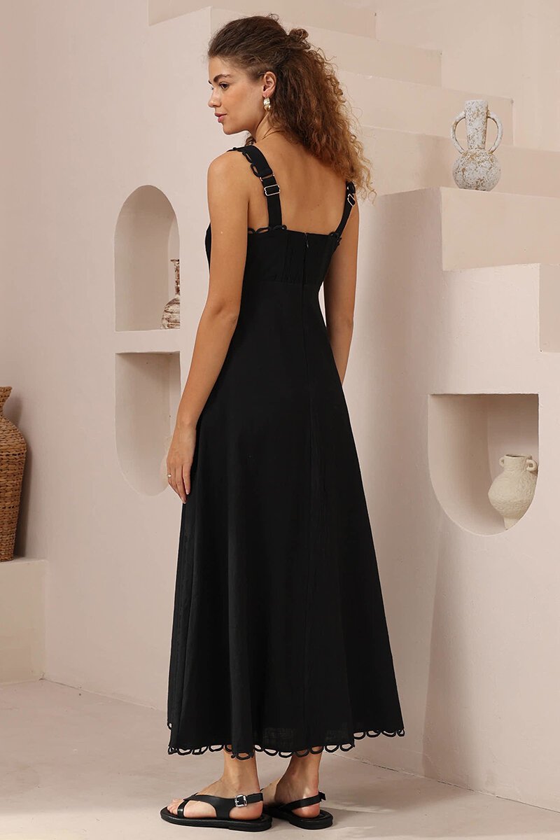 The Iris Maxi Scallop Trim Maxi Dress is your go-to for effortless summer style. With its feminine scallop detailing and flowing maxi length, it’s designed to move with you and keep things chic yet relaxed all season long.