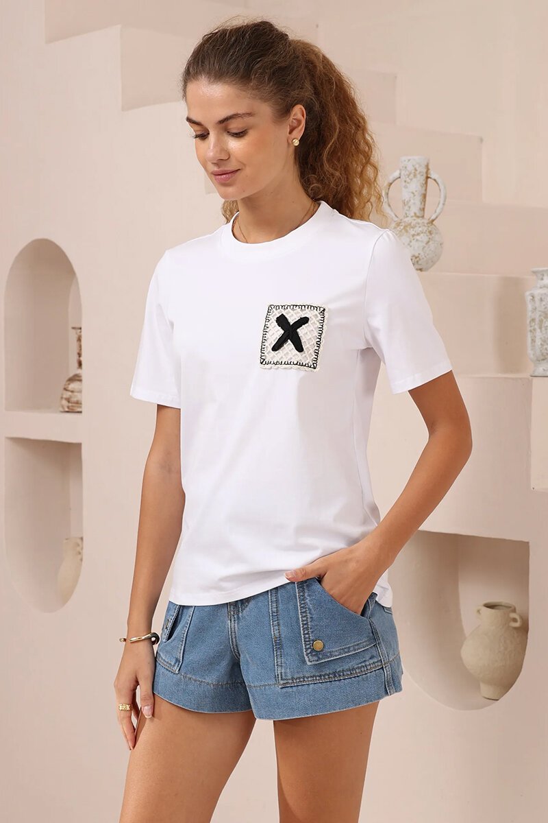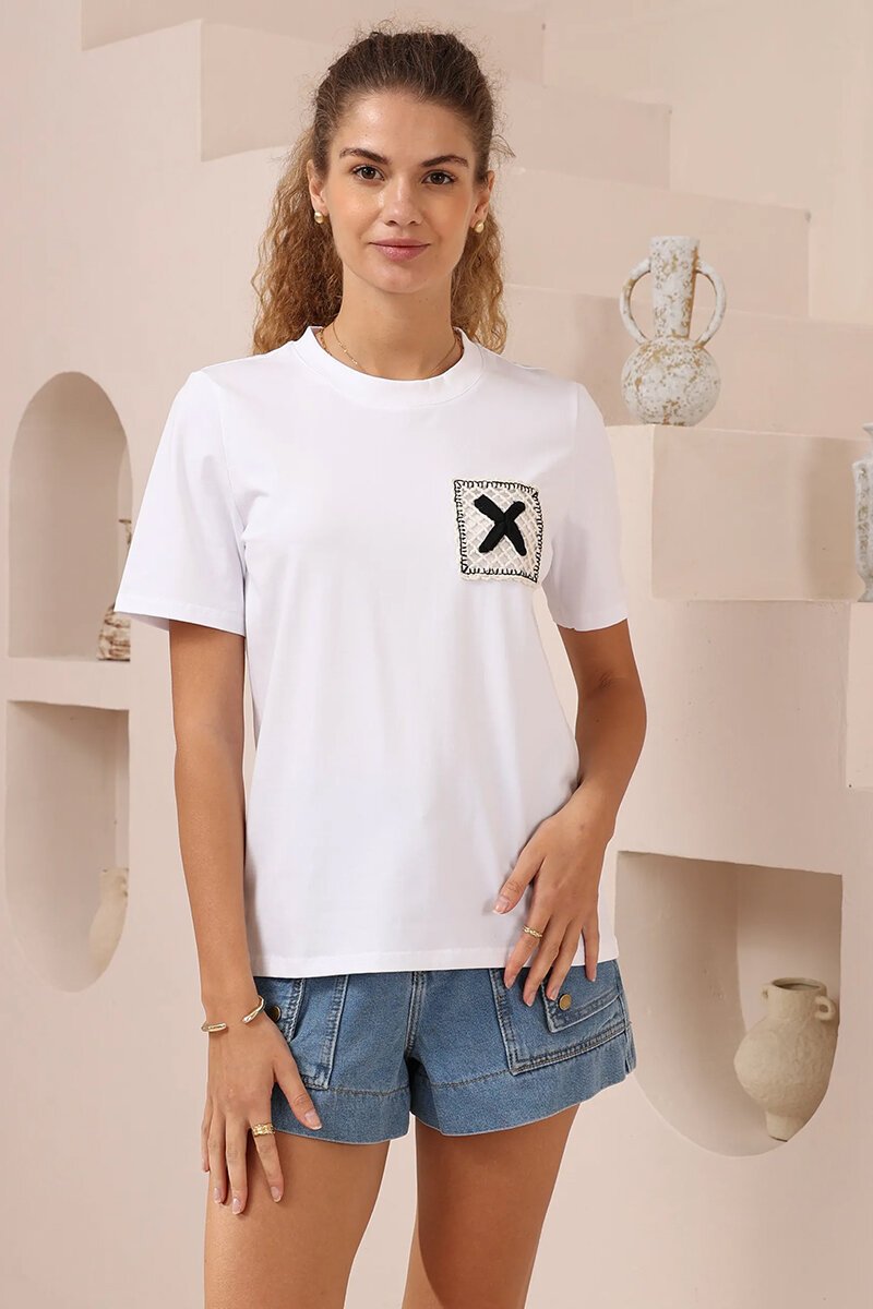 Keep it casual with the Iris Maxi Stitched Up Tee, a classic crew neck with a playful edge. Featuring a bold stitched patch detail, this tee adds personality to your everyday denim or shorts while keeping things fresh and easy.