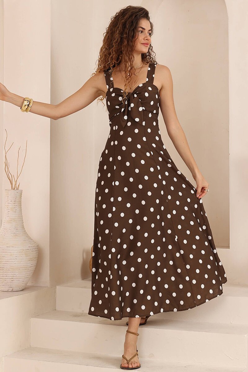 The Iris Maxi Tie Front Maxi Dress is classic, feminine, and so easy to wear. With its playful polka dots, flattering tie-front bodice, and swishy A-line skirt, it’s perfect for long lunches, garden parties, and warm summer evenings.