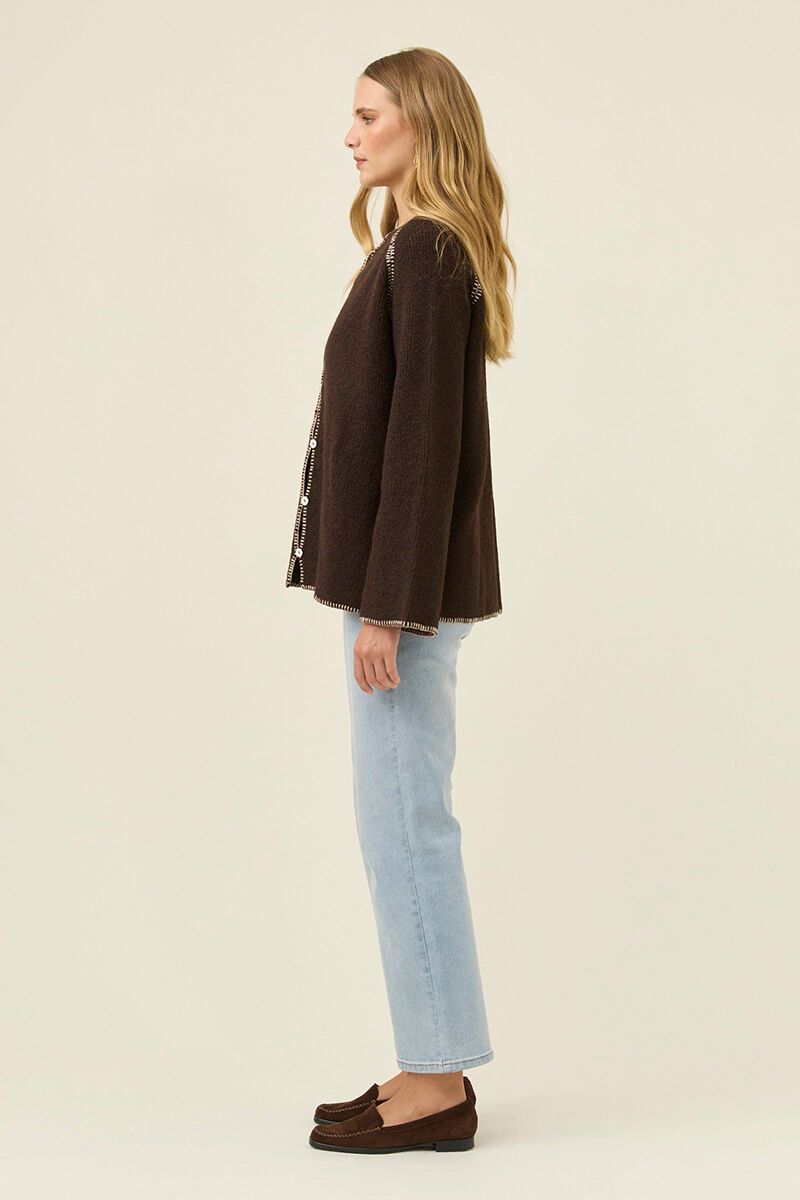 The Isle Of Mine Athena Button Cardigan is an easy layering piece with subtle detail. Soft knit, relaxed shape and contrast stitching make it perfect for everyday wear, styled open or buttoned through.