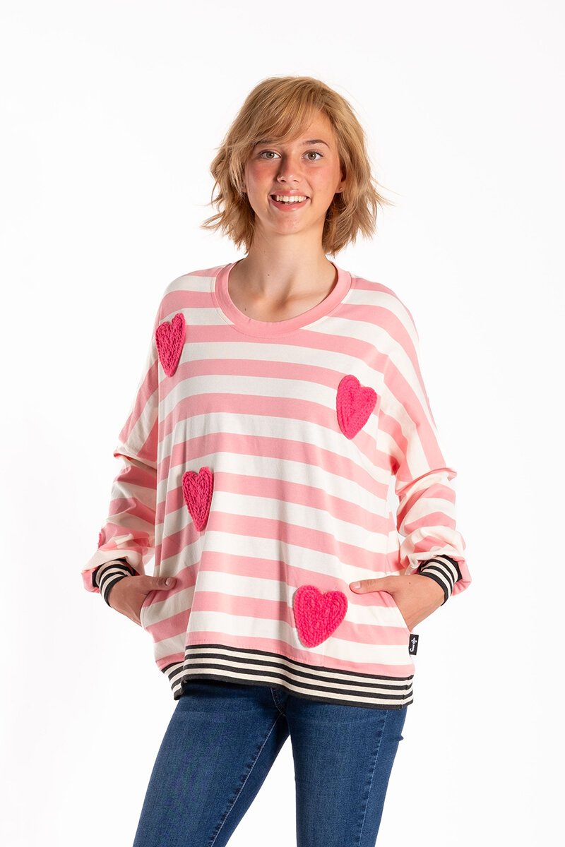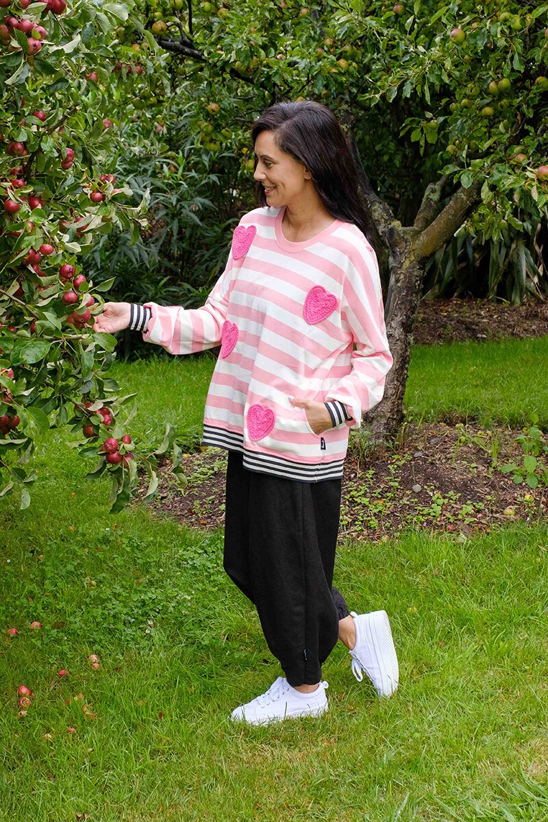 The Jellicoe Candy Stripe Sweatshirt brings playful energy to your wardrobe with its bold stripes and textured heart appliqués. Cut in a relaxed fit with contrast hem and cuff detailing, it’s the perfect mix of cosy comfort and fun personality.