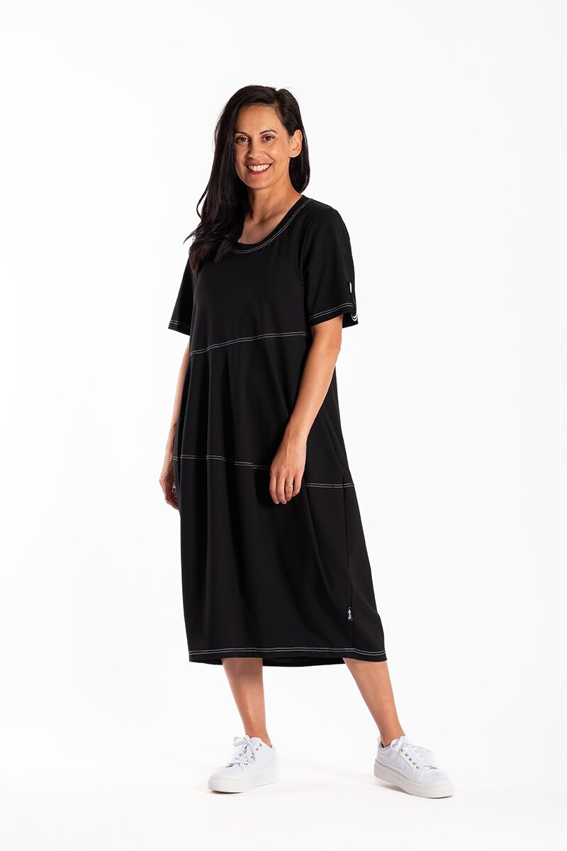 The Jellicoe Chelsie Dress is the definition of effortless comfort. With its relaxed fit, subtle seam detailing, and soft drape, this throw-on style works for any day of the week. Pair it with sneakers for casual ease or slides for a simple, polished look.