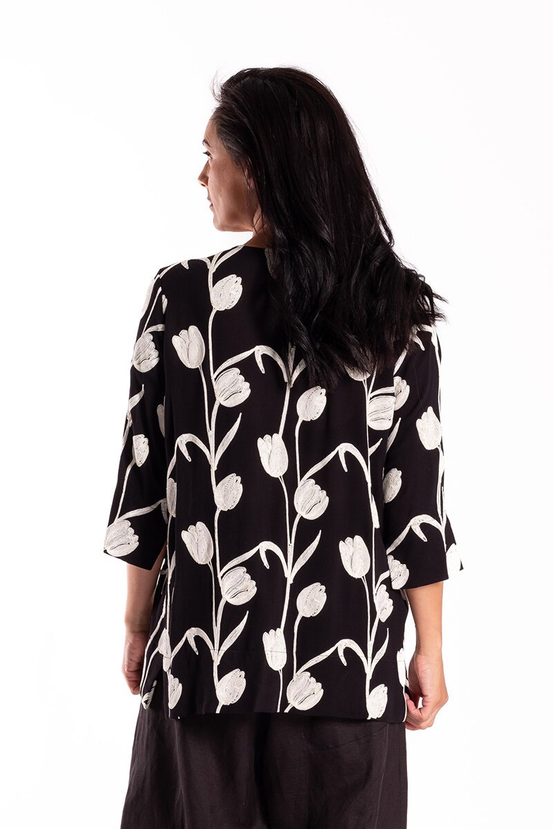 The Jellicoe Macie Tulips Top is the perfect mix of effortless and elegant. With its relaxed silhouette, soft drape, and easy V-neckline, it’s a top you’ll reach for again and again. Pair with linen pants or denim for timeless, throw-on-and-go style.