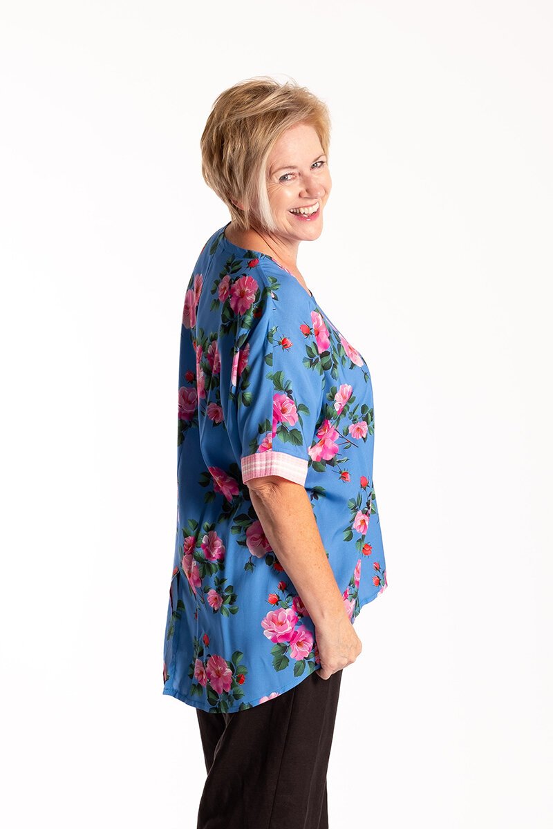 The Jellicoe Persian Blue Relaxed Top is fresh, floral, and fun – the kind of piece that brightens any day. With its relaxed fit, side splits, and contrast gingham trim on the sleeves, it’s easy to wear and even easier to love.