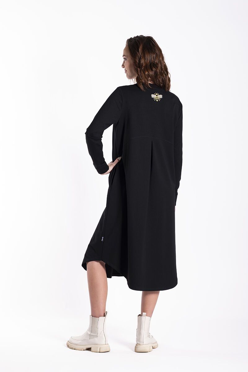 The Jellicoe Simone Dress blends everyday ease with thoughtful detail. Softly structured with a relaxed silhouette, embroidered bees and stars add personality, while a back pleat creates movement, comfort and a flattering shape for real, wearable style.