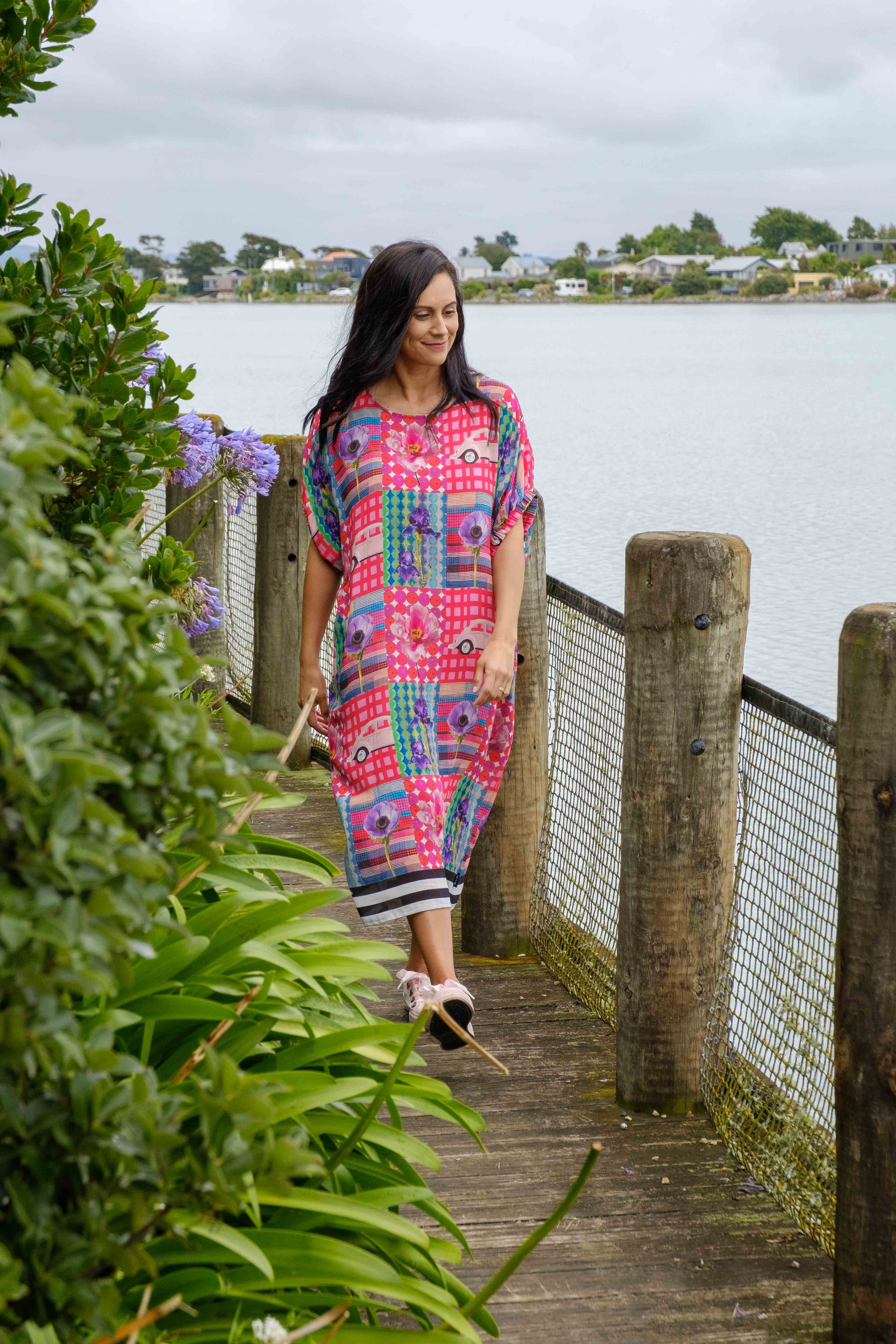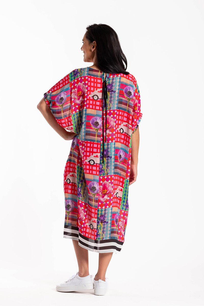 The Jellicoe Sofia Dress is colour, comfort, and personality wrapped into one standout piece. Its vibrant patchwork print brings instant joy, while the relaxed drape, cuffed sleeves, and striped hem give it that signature Jellicoe flair. A throw-on-and-go dress that still feels like an occasion.