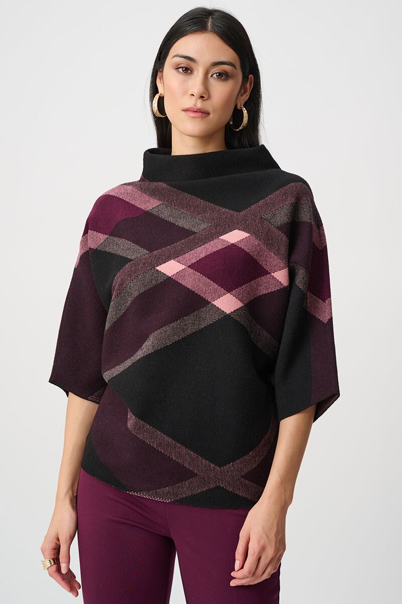 Joseph Ribkoff Brushed Viscose & Nylon Plaid Funnel Neck Sweater