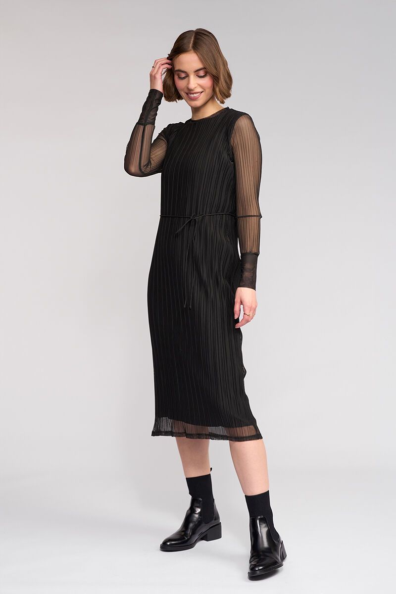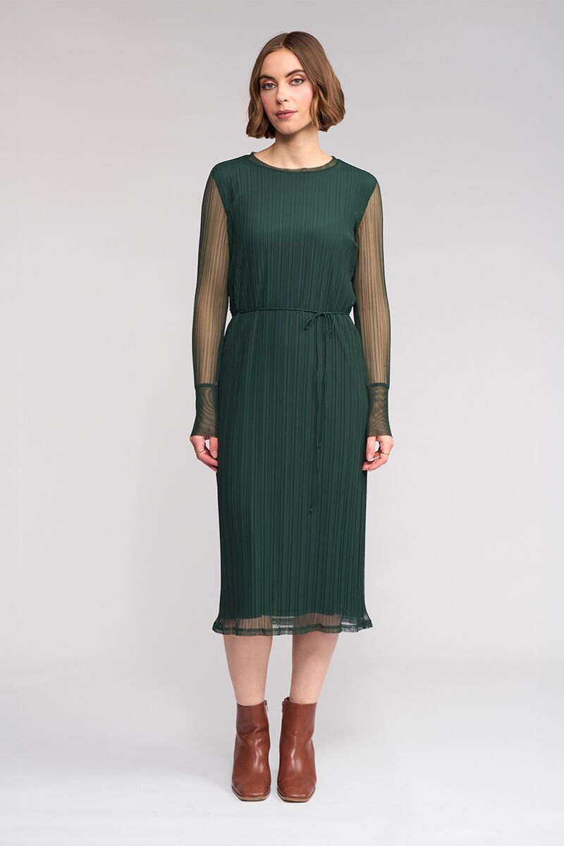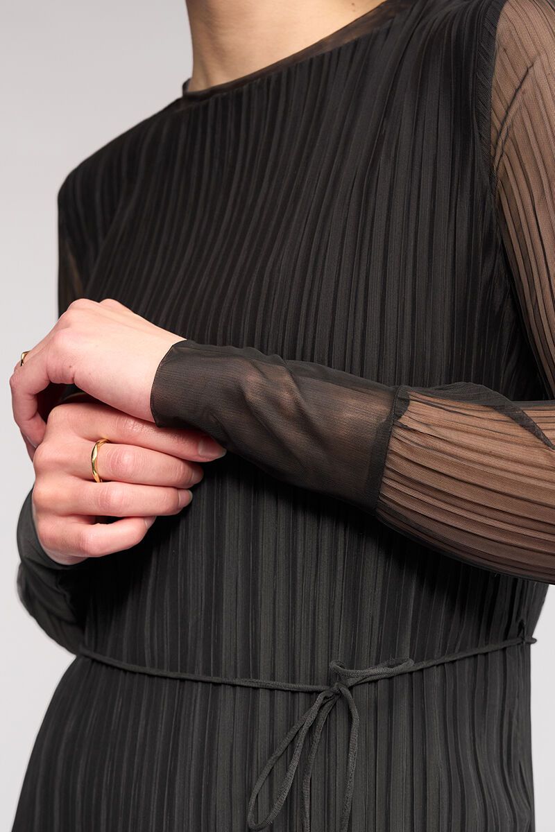 An effortlessly elegant piece with beautiful movement. The Freddie Dress features soft pleating through the body, sheer long sleeves and a gentle waist tie to shape your silhouette. Easy to dress up or down, it’s one of those wear-anywhere styles you’ll keep coming back to.
