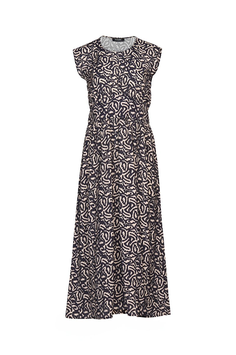 The Knewe Label Soul Global Dress is a versatile midi with an effortless silhouette that works from day to night. Featuring a soft round neckline, cap sleeves, and a flowing skirt, it’s designed for comfort while still making a statement.