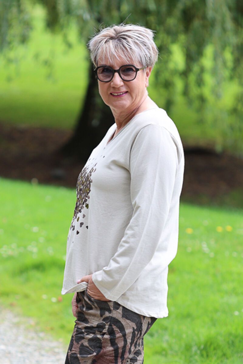 The La Strada Art Deco V Neck Top is an easy everyday piece with a little extra personality. The soft feel and relaxed fit make it effortless to wear, while the statement metallic front detail adds just the right amount of interest.