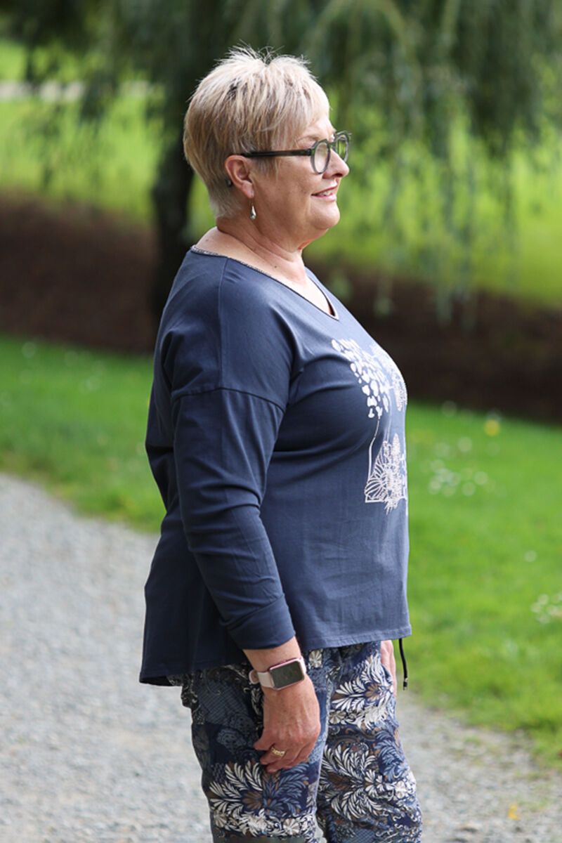 The La Strada Bling & Animal Pattern Top  is an easy top that brings a little personality to your everyday outfits. It has a relaxed shape, eye-catching graphic print and a subtle sparkle neckline.