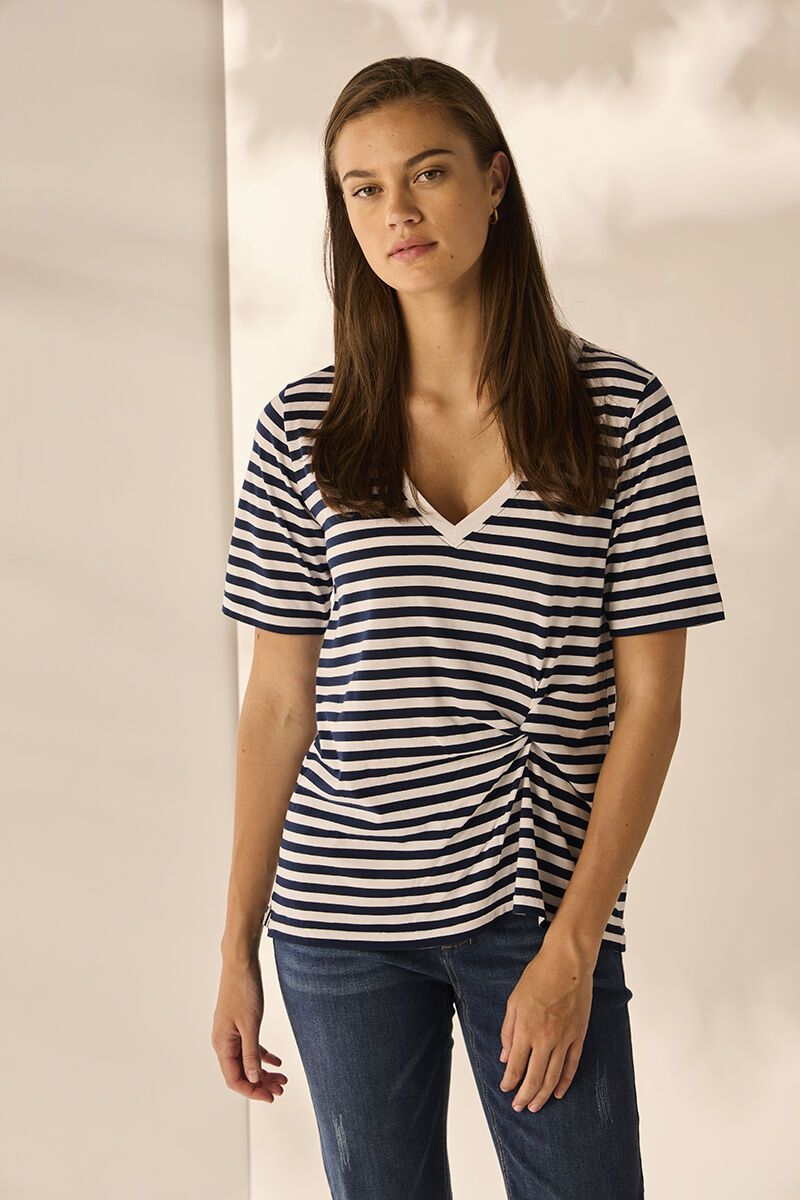 The bust is measured across the body at the bottom of the arm hole / seam.