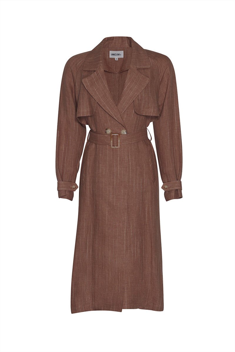 The Loobies Story Chianti Trench Coat is your summer style essential! With its chic disrupted pinstripe, faux double-breasted design, deep side splits, wide angled welt pockets, and a removable belt, it’s the perfect blend of classic and contemporary for a fresh, sophisticated look.