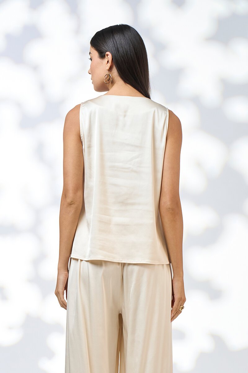 The Loobies Story Demi Tank is the ultimate luxe layering piece your wardrobe craves. With its soft drape, clean V-neckline, and fluid silhouette, it’s understated elegance at its best. Wear solo with wide-leg pants or layer under a blazer for polish.Garment Features