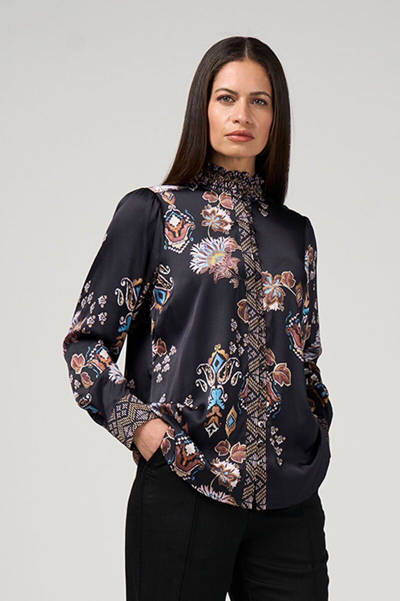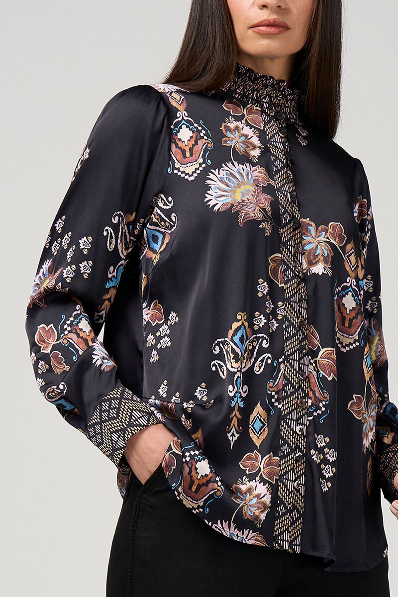 The Loobies Story Gilded Lotus Shirt feels polished with a touch of drama. The rich black base and detailed print give it that elevated edge, while the silky finish keeps it easy to wear.