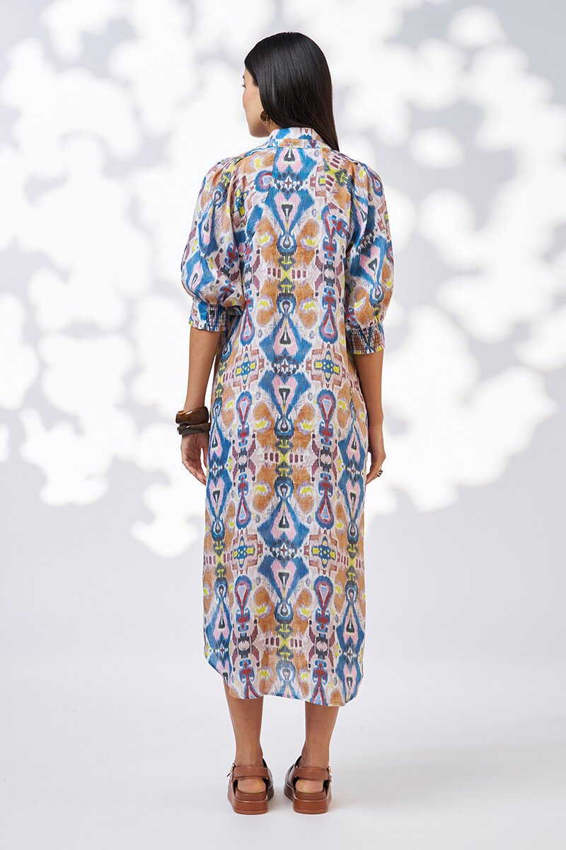 The Tia Shirt Dress is all about relaxed polish. Designed with a collared neckline that tucks into a soft V, it skims the body with ease and flows into side splits for movement. With shirred half-cuffs and handy in-seam pockets, it’s as versatile layered open as it is worn solo.