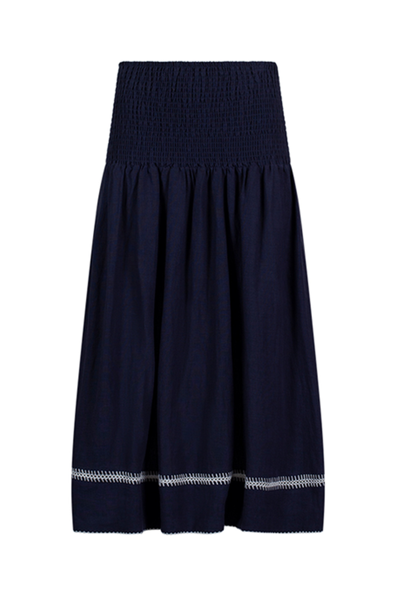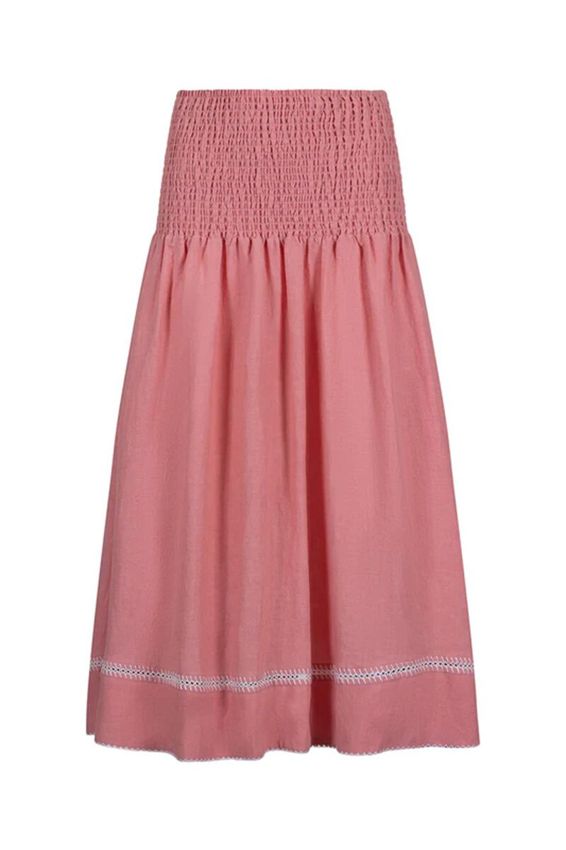 The Loobies Story Varena Skirt is an easy summer favourite, with its soft shirred waist and floaty midi length that moves beautifully as you walk. Comfortable yet polished, it’s perfect with a simple tee or the matching top for relaxed days that still feel put-together.