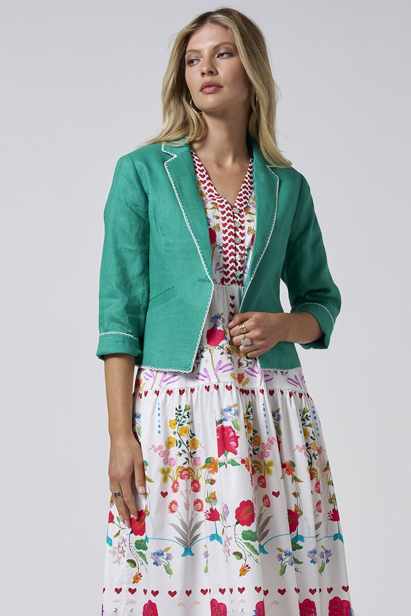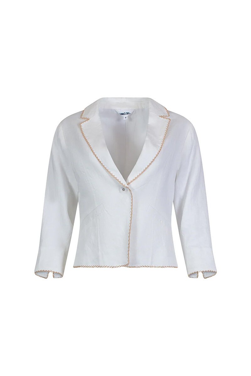 Step up your style game with the Viva Jacket from Loobies Story! This jacket gives a nod to classic tailoring but with a modern twist. The playful contrast stitching adds personality, while the three-quarter sleeves make it perfect for layering as we move into the warmer months.