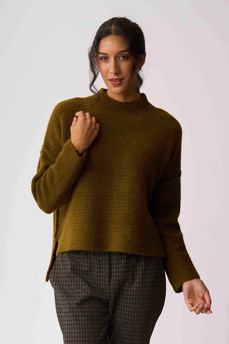 The Memo High Neck Zip Back Jumper is one of those easy knits that quietly does the work. Soft, warm and beautifully shaped, with a zip-back detail that gives it just enough edge for everyday wear.