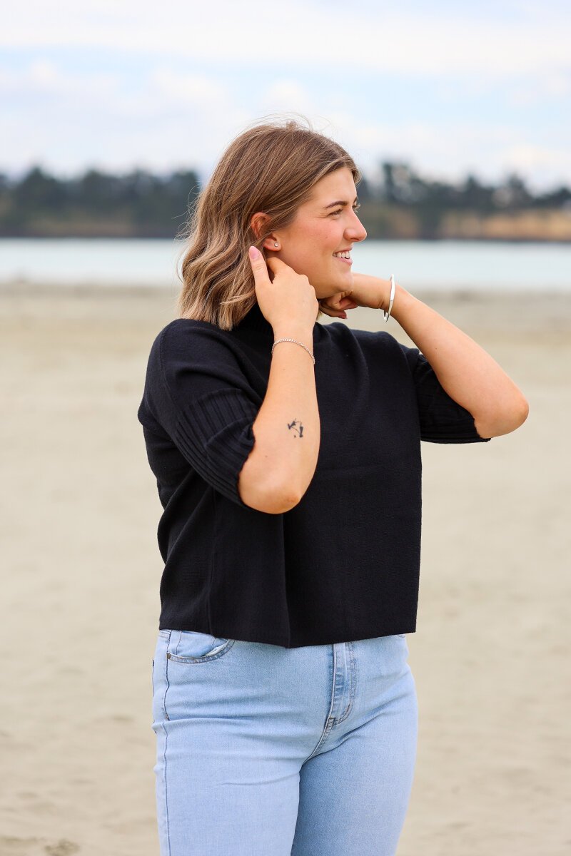 The Memo Roll Neck Jumper is your go-to for relaxed polish. With a soft roll neckline, short ribbed sleeves and a drapey, boxy fit, it’s the perfect throw-on for work or weekends. Style with wide-leg pants for easy sophistication.