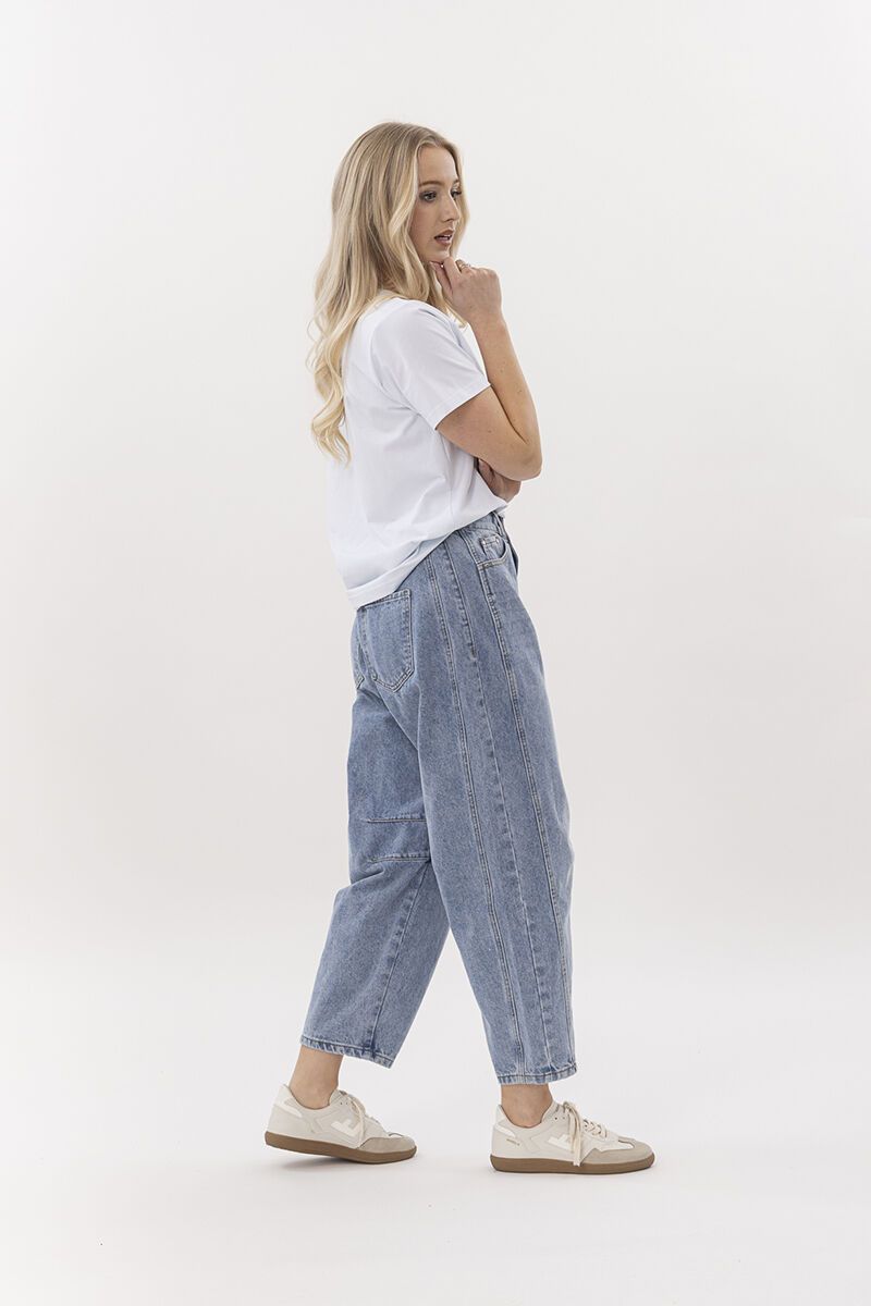 The Mi Moso Barrel Jeans are the comfy-cool pair you’ll be reaching for on repeat. Relaxed through the leg with a soft taper and stitched knee detail, they’ve got that modern, slouchy shape that still looks polished. Just add boots and a knit for everyday ease.