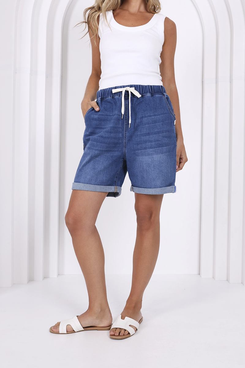 The Monaco Hugo Short is your throw-on-and-go denim with a sporty twist. Soft stretch, an easy drawstring waist, and a relaxed longer length make it perfect for everyday wear. Cuffed hems and subtle stripe detailing keep the Hugo feeling cool and polished.