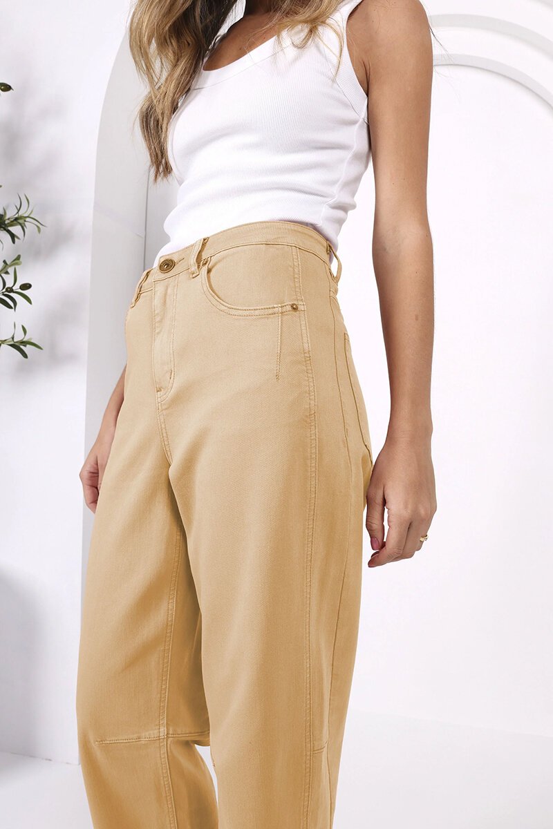 The Monaco Toni Barrel Jeans bring a subtle edge to your denim rotation. With angled panelling and a relaxed, structured leg shape, they give off that modern cool-girl vibe without trying too hard. Wear them with your go-to boots or sneakers for off-duty style that still feels sharp.