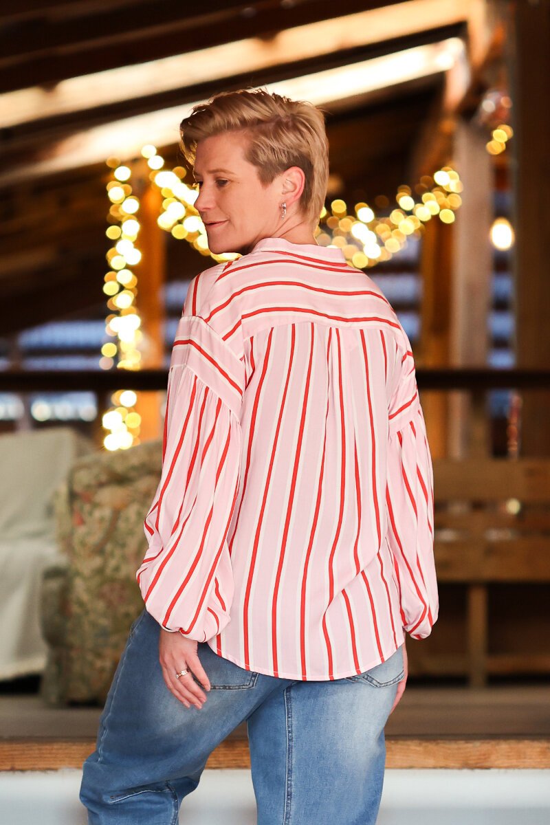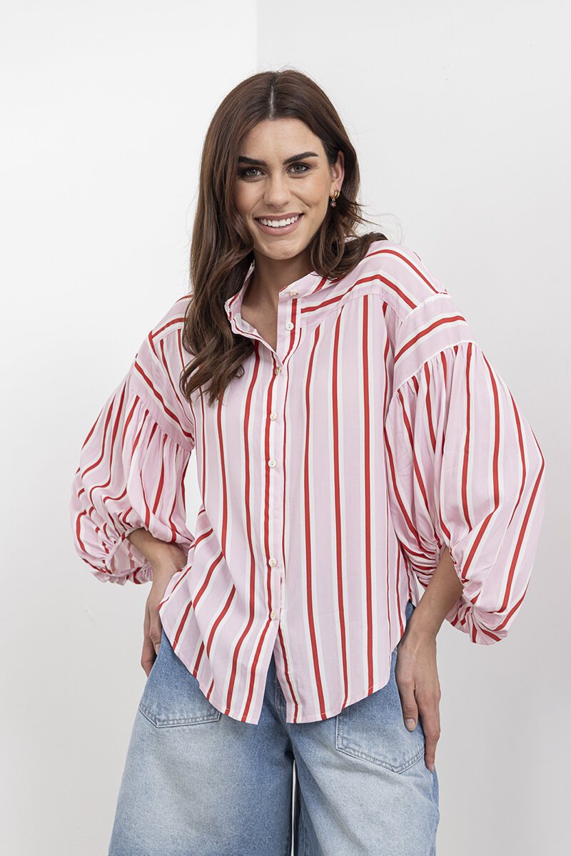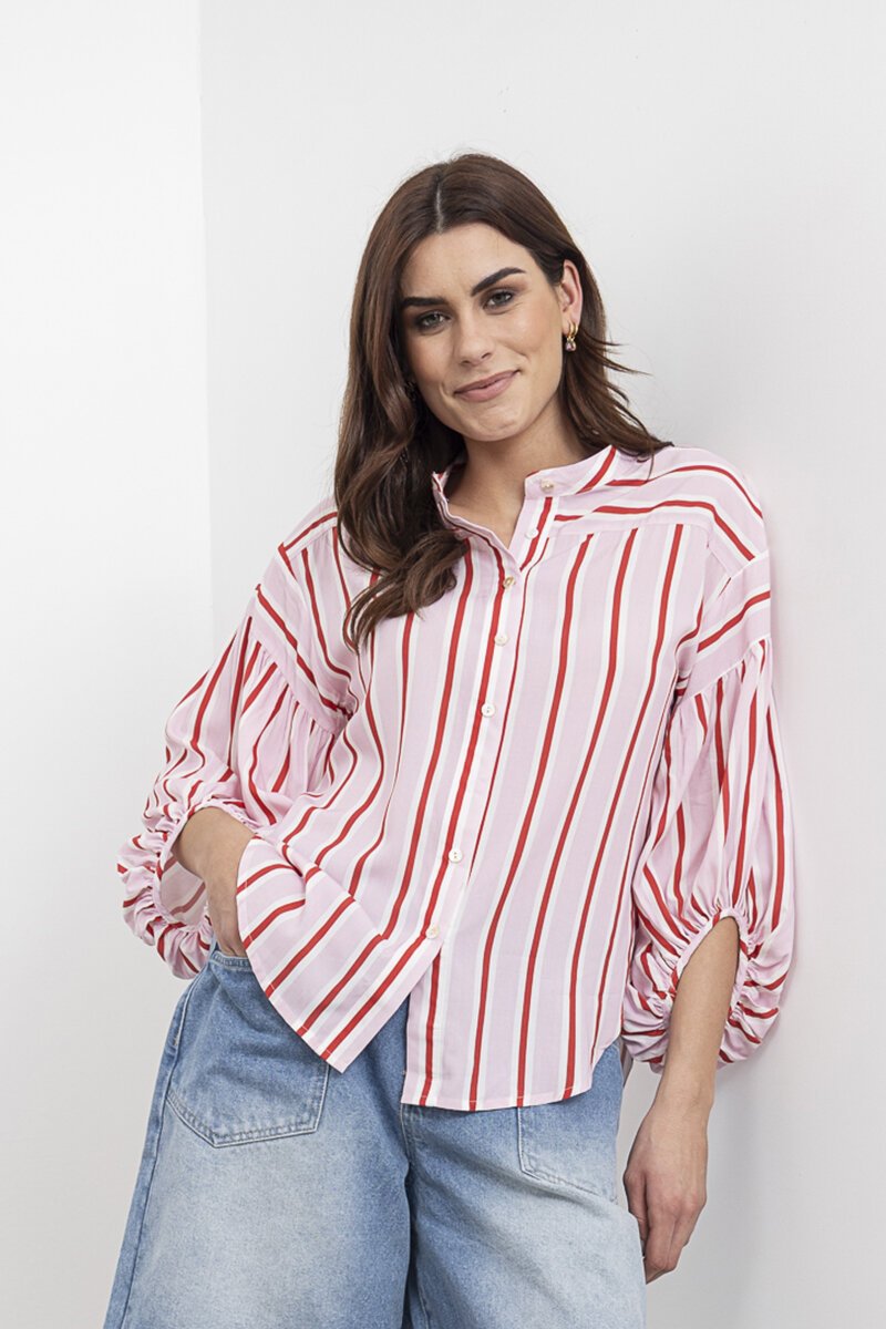 The Moss Bronte Candy Shirt is a fun, easy piece that brings a little playfulness to warm-weather dressing. With its soft drape, gathered sleeves, and relaxed fit, it’s perfect for pairing with denim shorts or wide-leg pants for a fresh summer look.