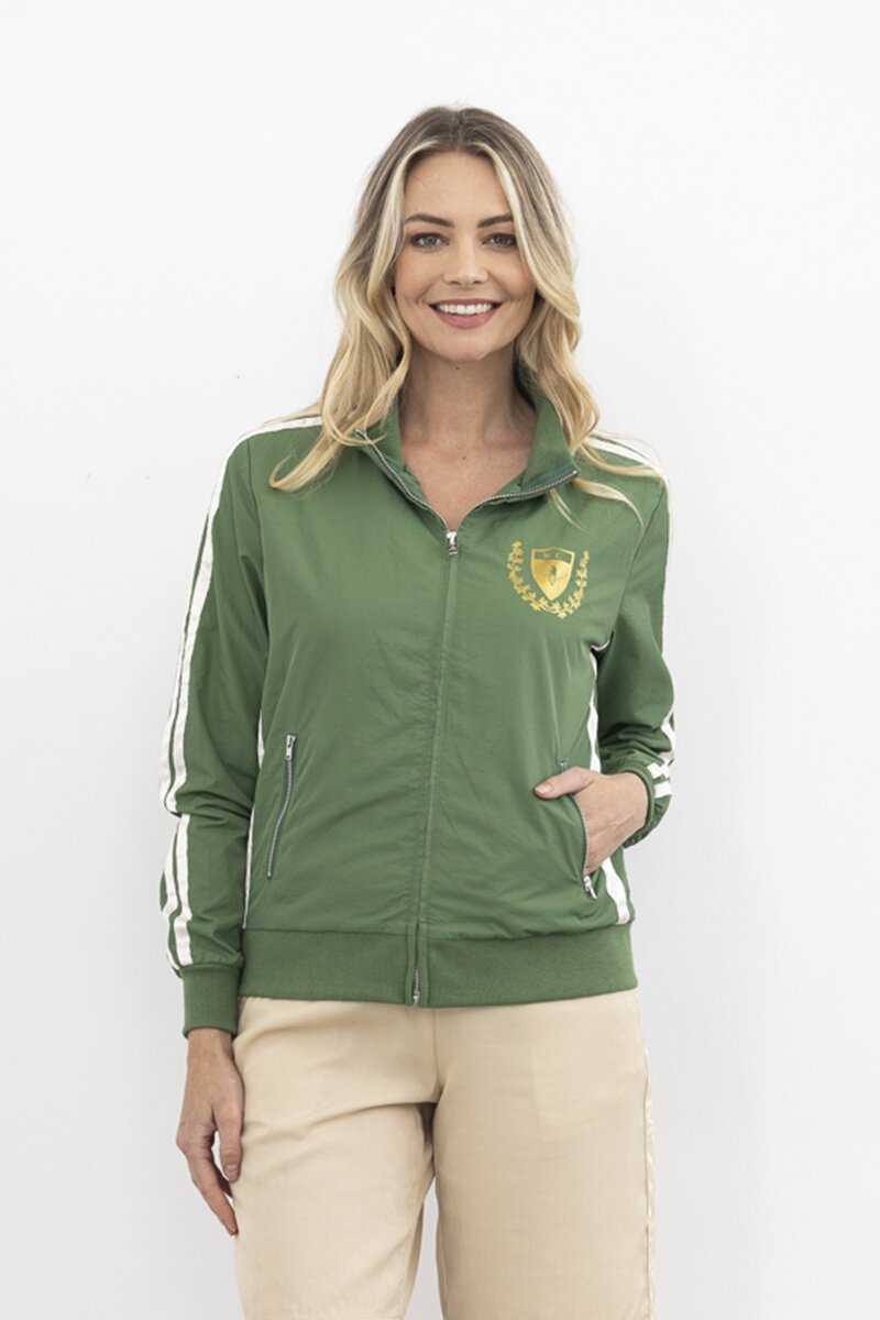 The Moss Crest Bomber Jacket nails that sporty-luxe vibe. With striped sleeve detailing, a zip front, and ribbed trims, it’s the perfect throw-on for casual days or weekend adventures. Lightweight, easy to wear, and effortlessly cool.