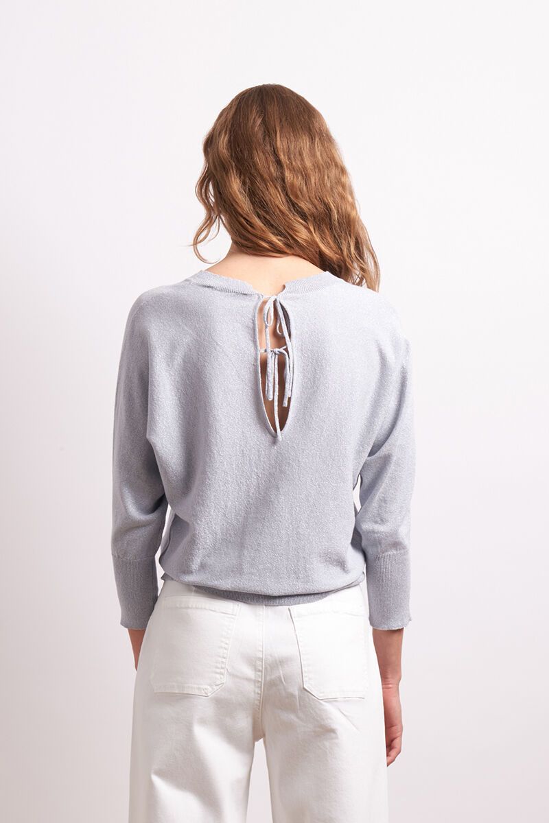 Soft and understated from the front, unexpected from the back. The Neris In Ore Top features a relaxed silhouette, soft shimmer finish, and an open-back keyhole with delicate tie details. A modern essential with a subtle statement twist.