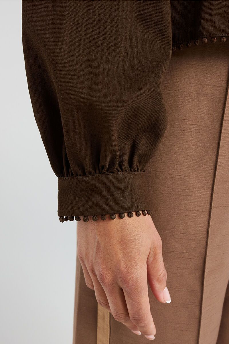 The Luna Shirt brings a more refined feel to everyday dressing. Softly structured with gentle volume through the sleeves and subtle trim detailing, it’s an easy piece that still feels considered. Style it tucked into tailored pants or worn loose for a relaxed, put-together look that moves with you.