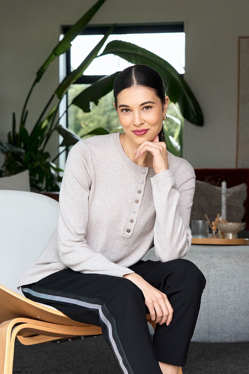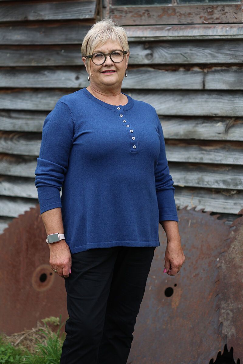 Lynette is wearing a size Large in the Indigo