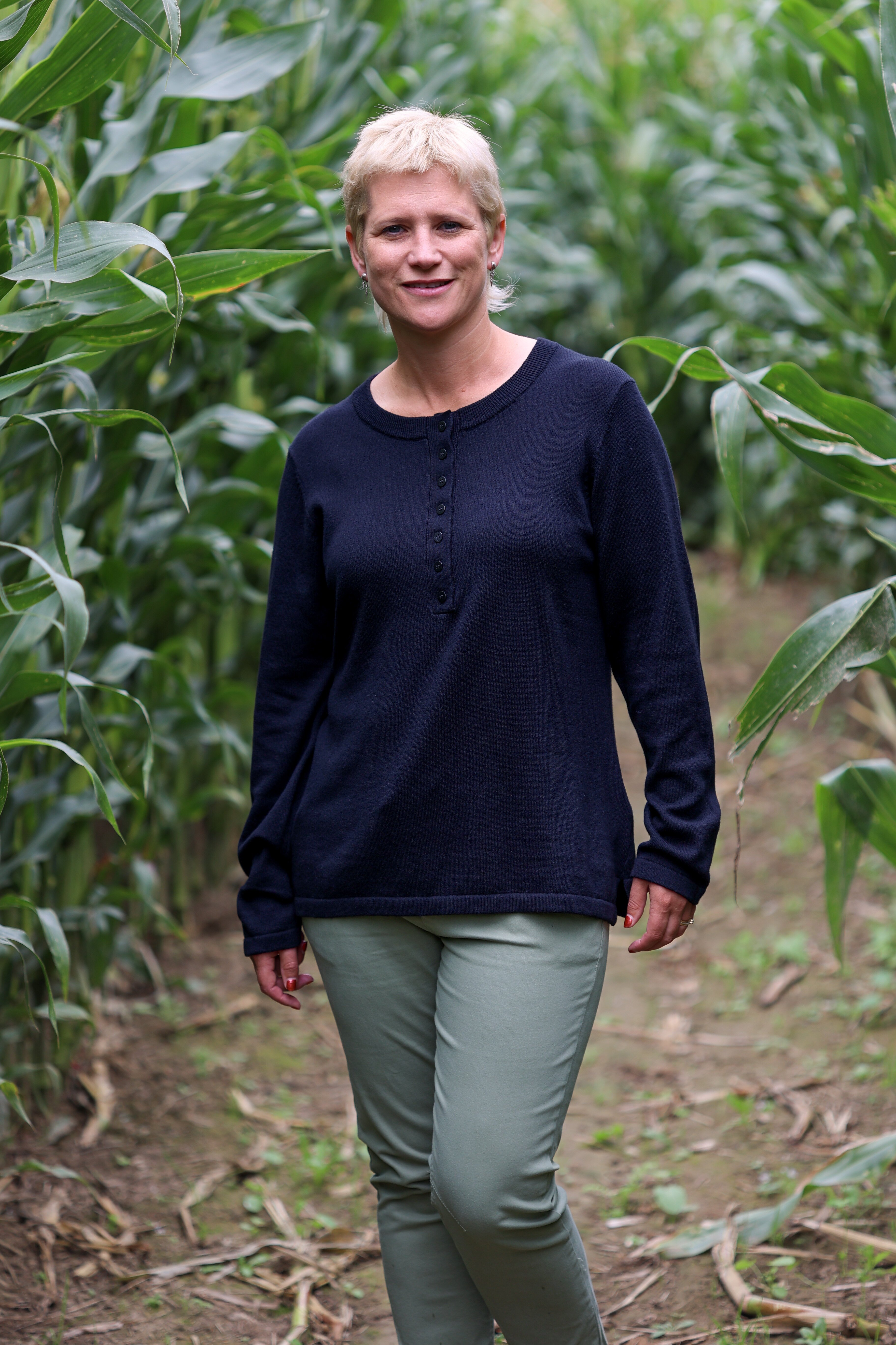Lynette is wearing a size Large in the Indigo