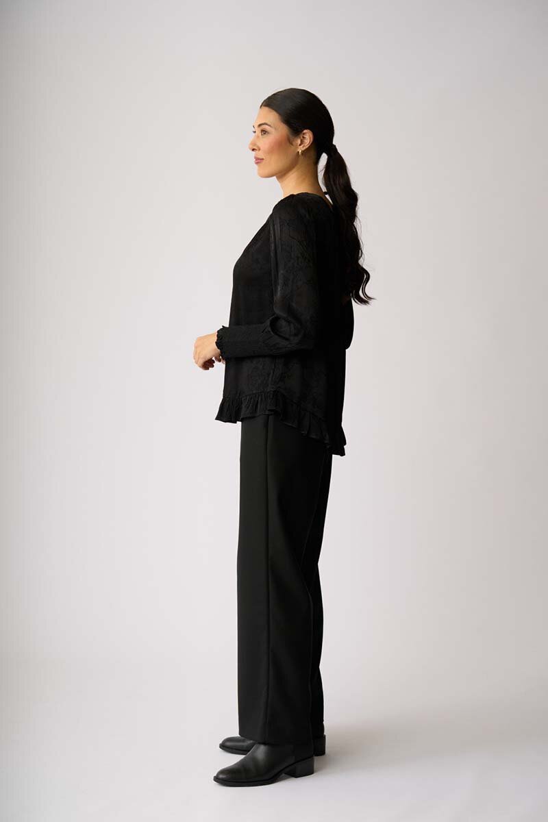 The Oh Three Shirred Cuff Scoop Hem Top is an easy, throw-on style with a soft drape and subtle texture. Relaxed yet refined, it works just as well with denim as it does tailored pants.
