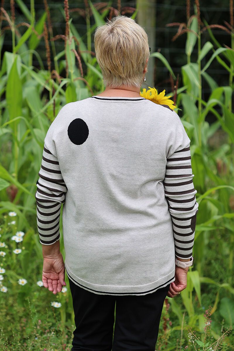 A playful Oh Three Spots & Stripes knit with everyday ease, this jumper combines bold spot detailing with classic stripe sleeves. A cotton cashmere blend is always popular.
