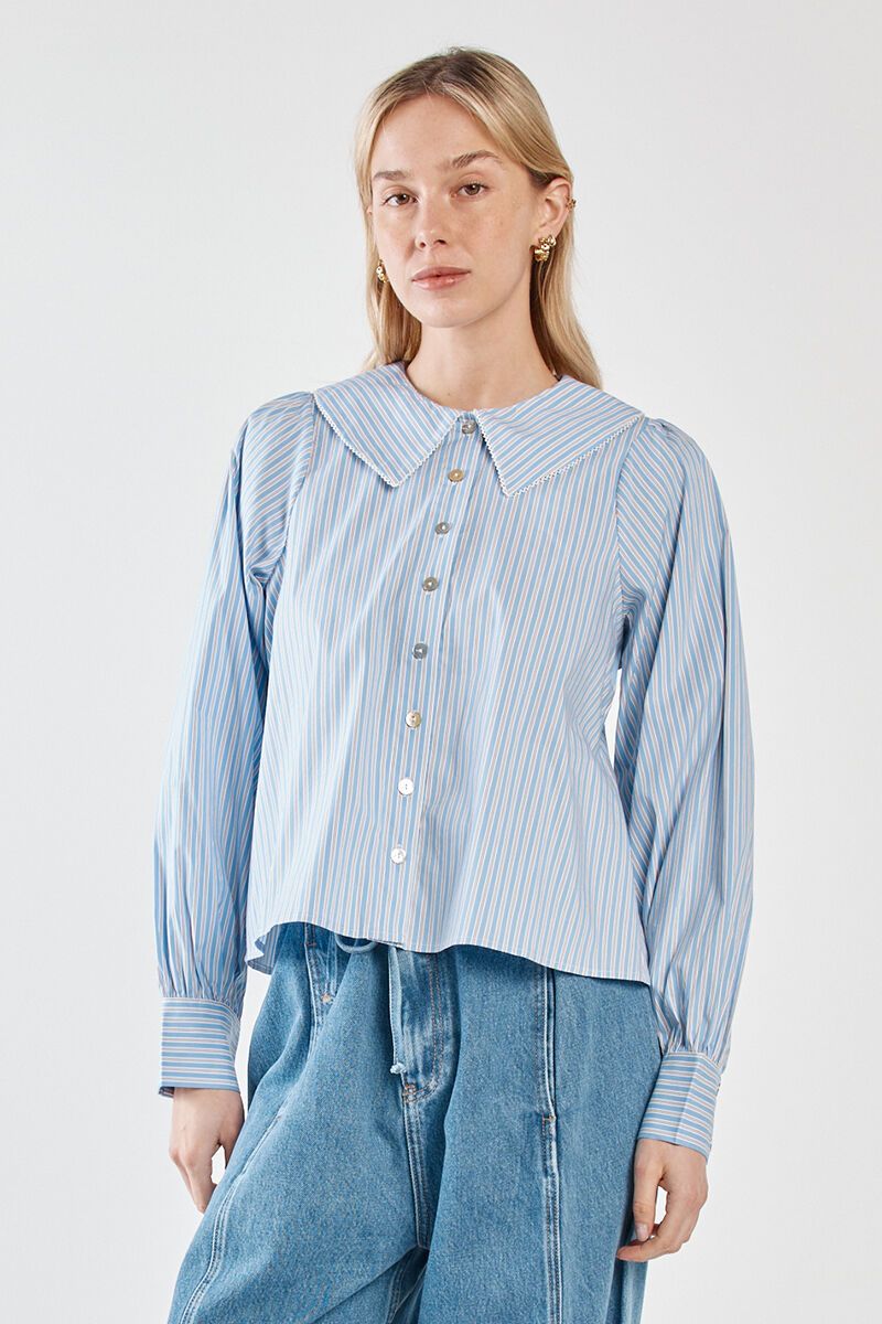 The Sass Gypsy Large Collared Shirt brings a playful twist to classic shirting. Lightweight and easy, with a statement collar and soft shape that dresses up denim in seconds.