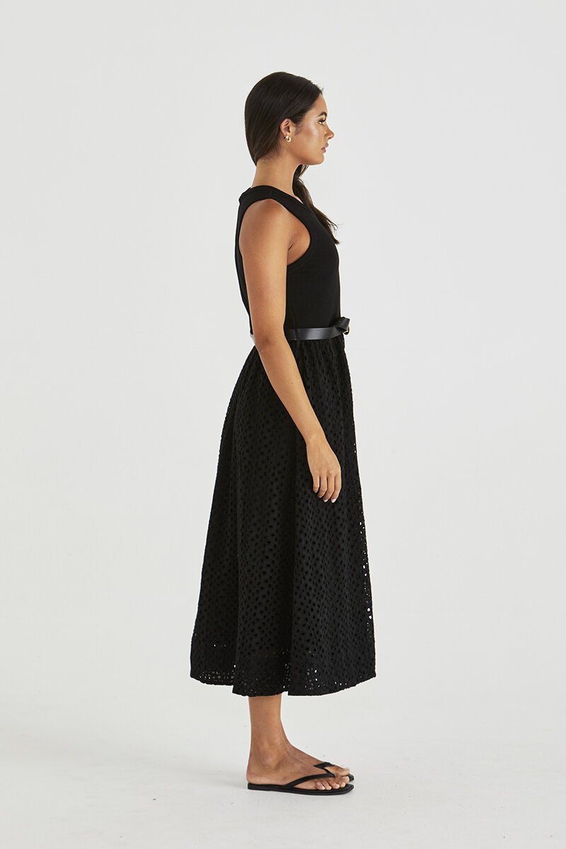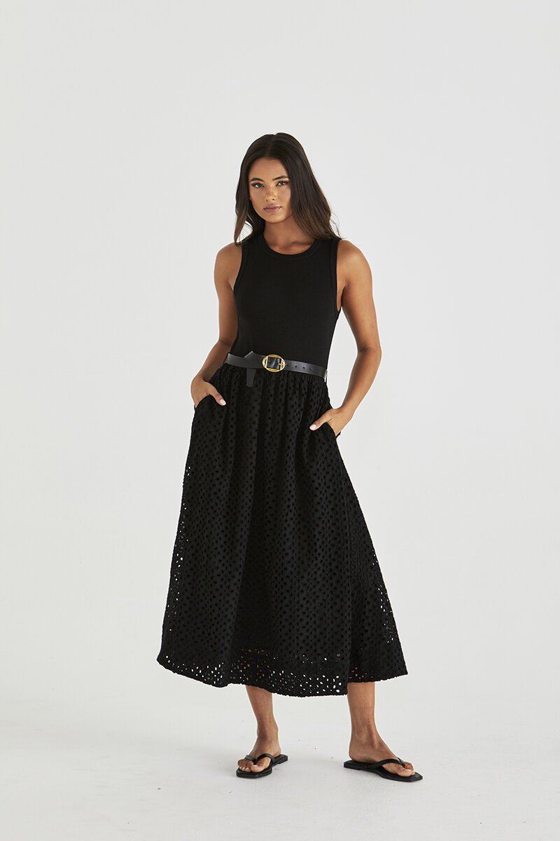 This Sass Pattie Dress has major attitude. Fitted through the bodice with a flared hem, this one brings clean lines and easy wearability. Add sandals and go—done and dusted.