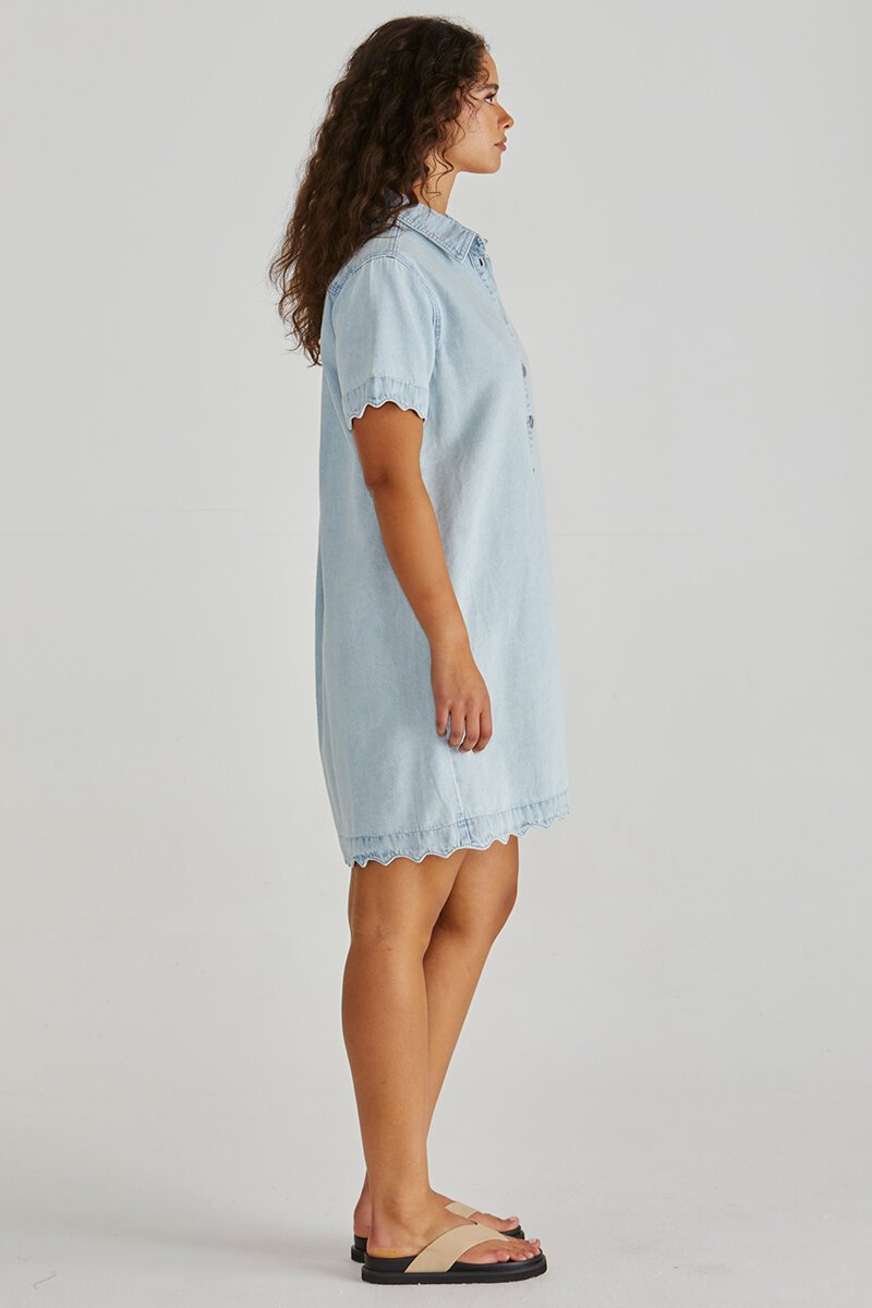 The Sass Vale Scalloped Dress is your go-to for effortless throw-on-and-go style. With sweet detailing through the sleeve and hem, and a relaxed, easy fit, it’s one of those pieces you’ll reach for again and again. Perfect with sandals now, and a cardi later.