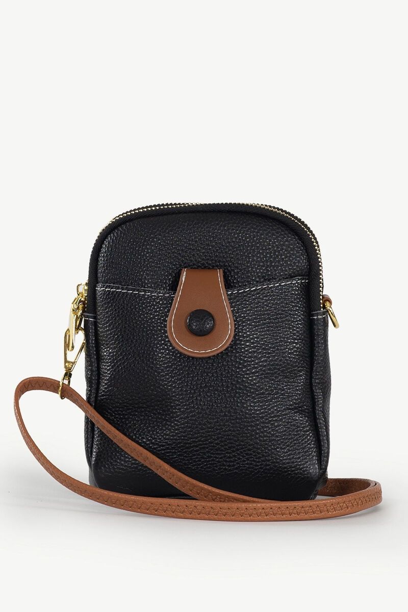 The Georgie Leather Cross Body Bag is your go-to for days when you want compact style without compromising function. The softly structured silhouette features a rounded top and contrasting tan details that highlight the front pocket and adjustable crossbody strap.