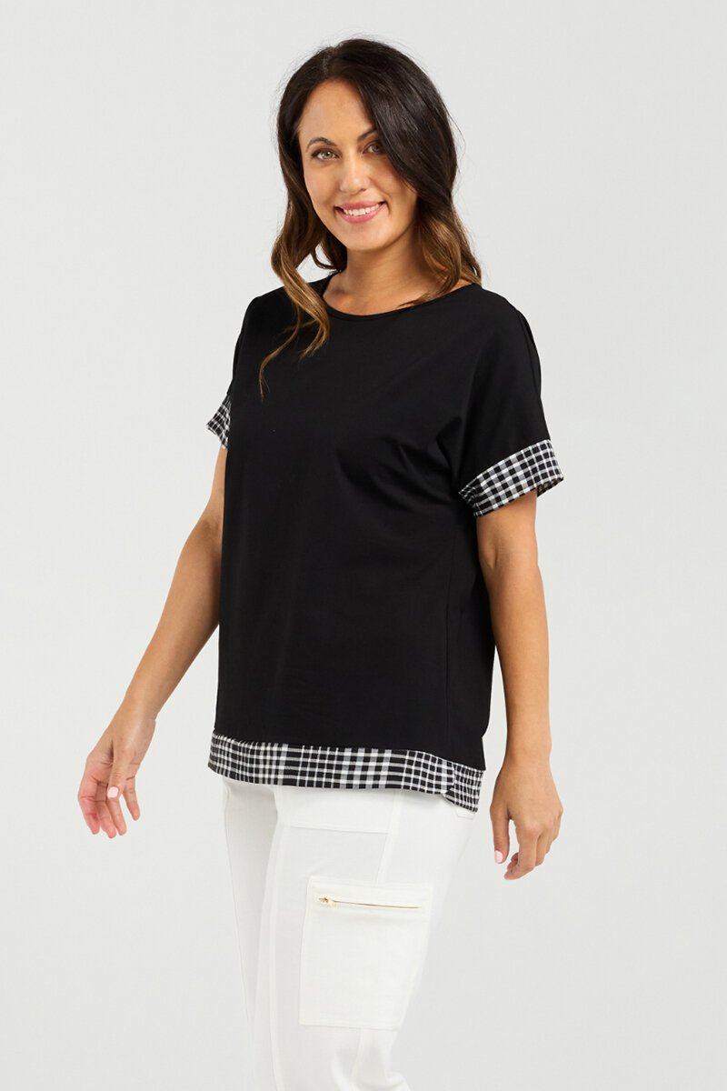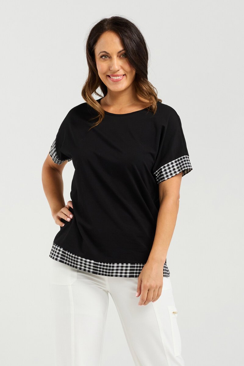 The Seduce Luna Top is a chic update to your everyday tee, finished with contrast check trims that add just the right amount of edge. Its relaxed cut makes it an easy throw-on style that still looks polished enough for day-to-night wear.