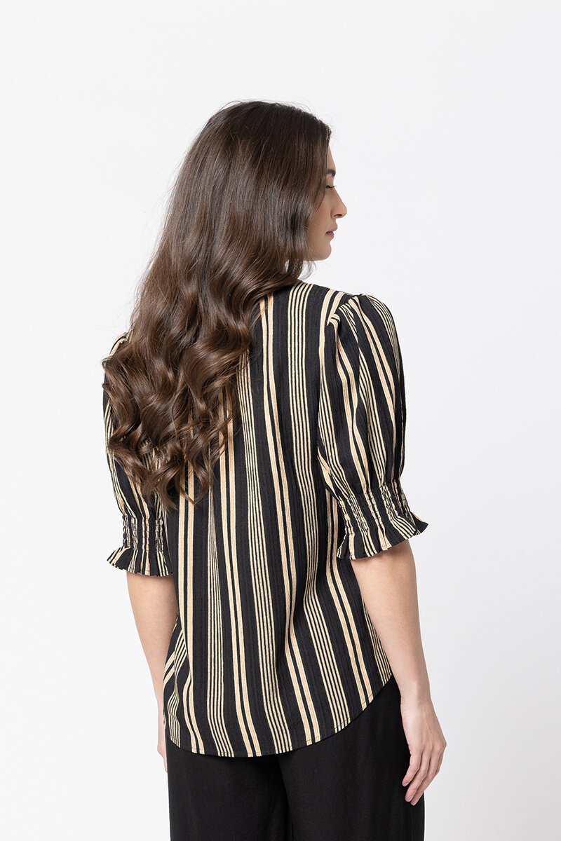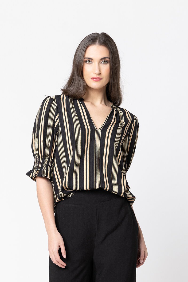 The Seeking Lola Butterfly Stripe Top is an easy all-rounder with its flattering V-neckline, softly gathered sleeves, and relaxed silhouette. The striped pattern gives it a modern edge, perfect for pairing with tailored pants or denim for a polished yet effortless look.