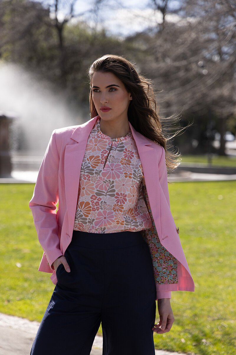 The Seeking Lola Movement Blouse is light, lovely, and full of personality. Featuring soft shirring through the sleeves, a gathered neckline, and a relaxed fit that drapes beautifully, it’s the perfect mix of easy and polished. Pair it with denim or tailored shorts for effortless everyday style.